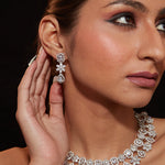 Rhodium Plated Zircon Studded Double Layered Choker Necklace & Dangle Earrings Set