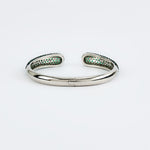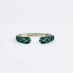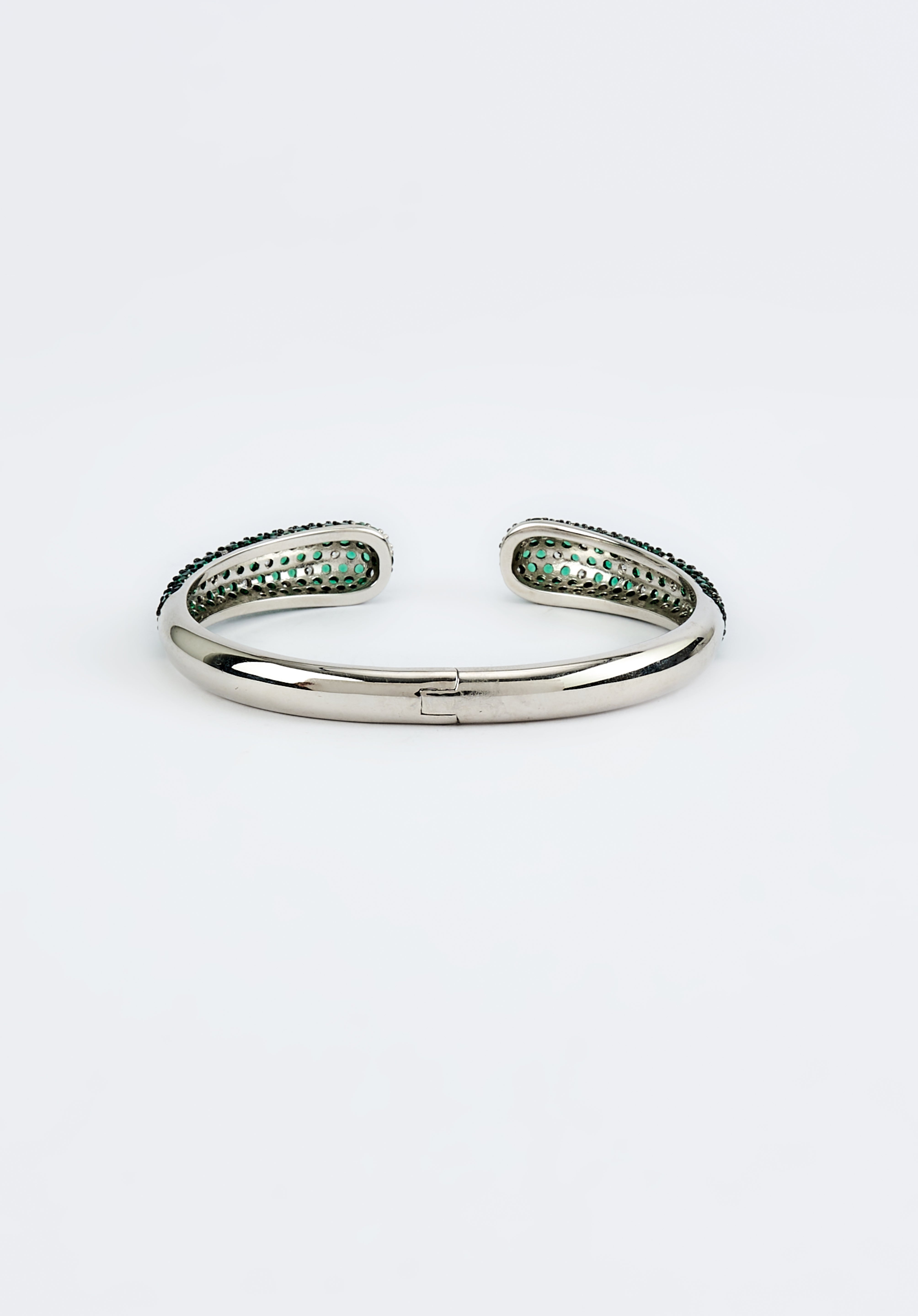 - Elegant Design: Features a striking open-ended cuff style adorned with dazzling emerald-green gemstones for a luxurious appeal.