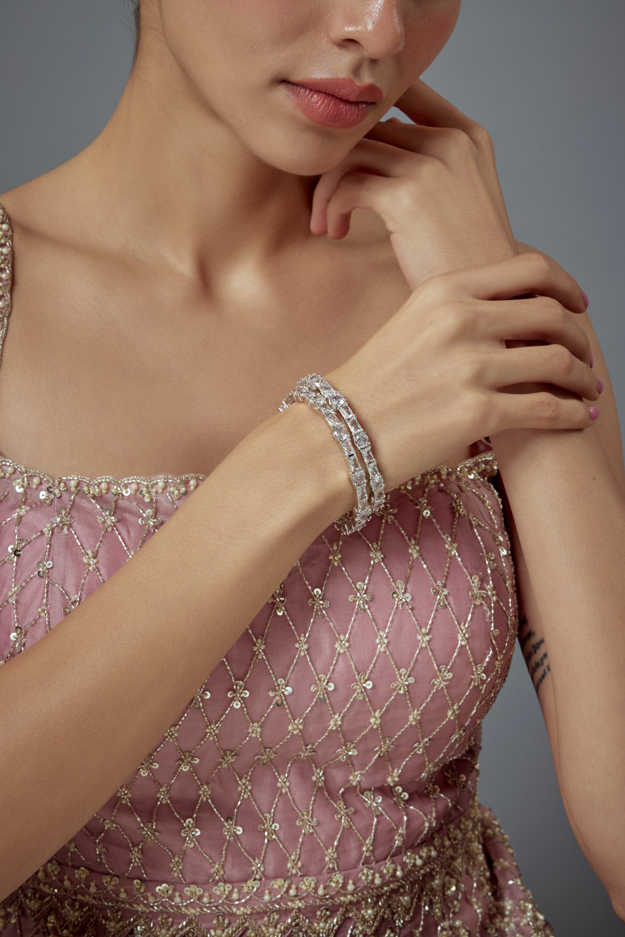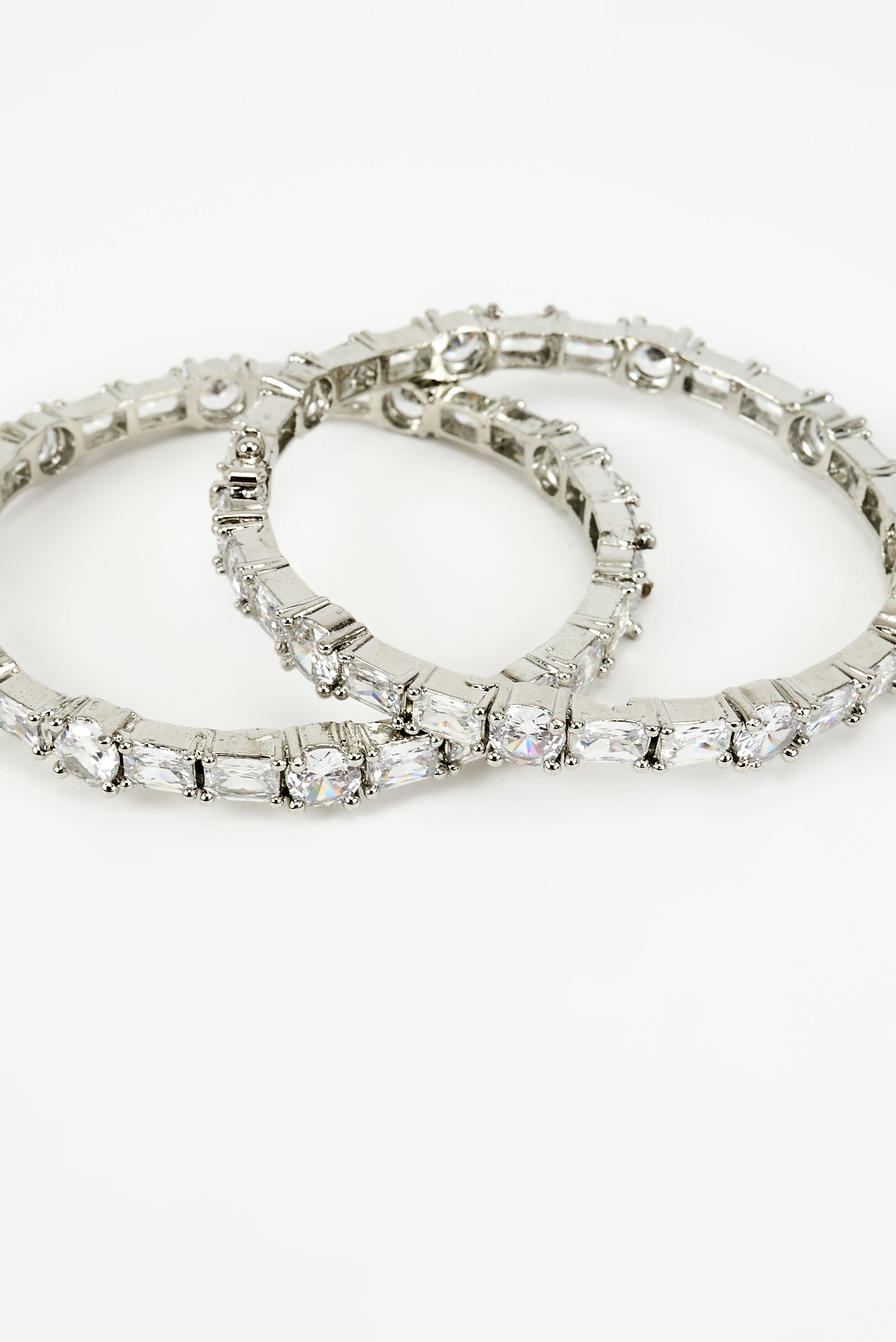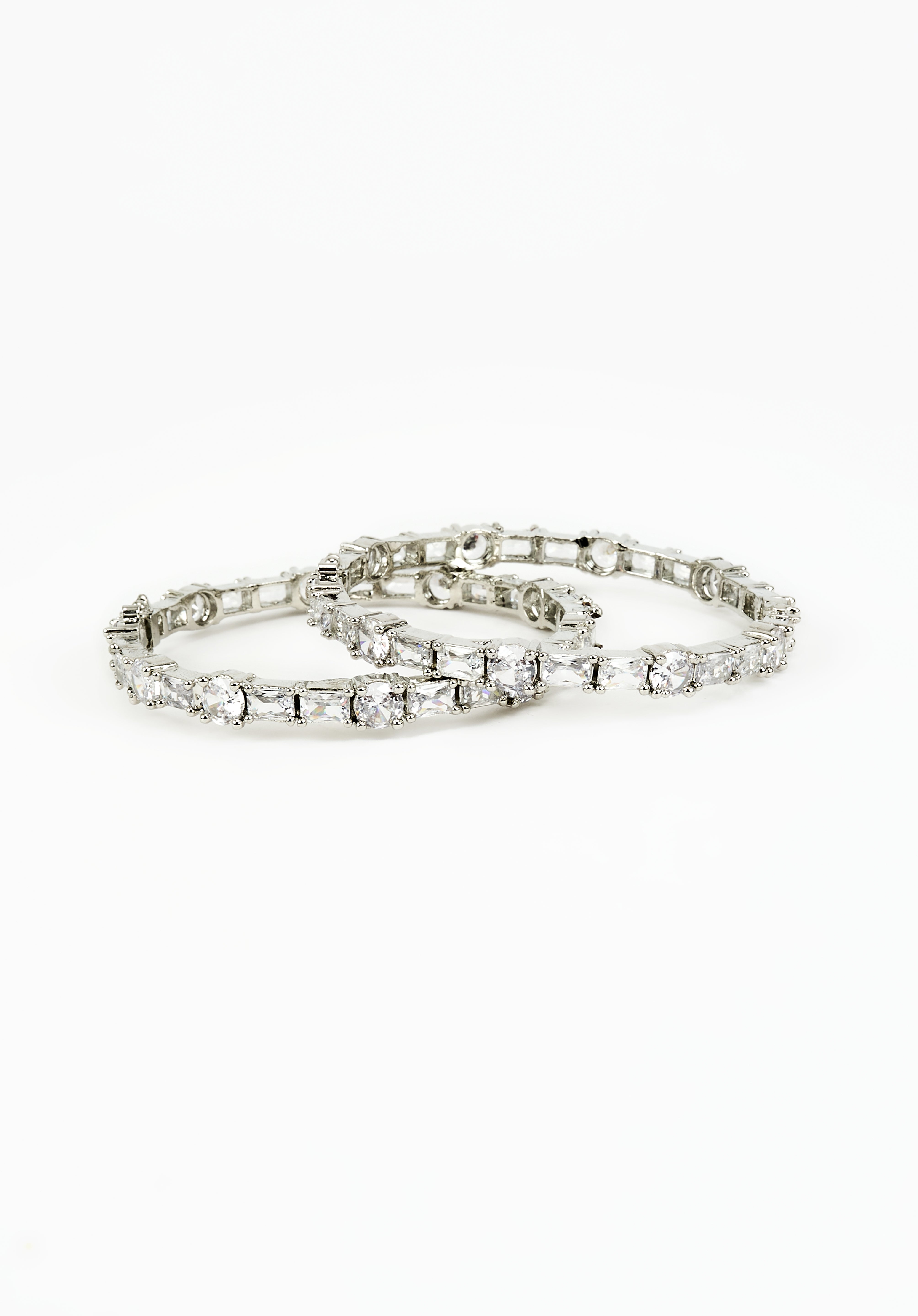 Zia Silver Plated Zircon Womens Pair of Bangles