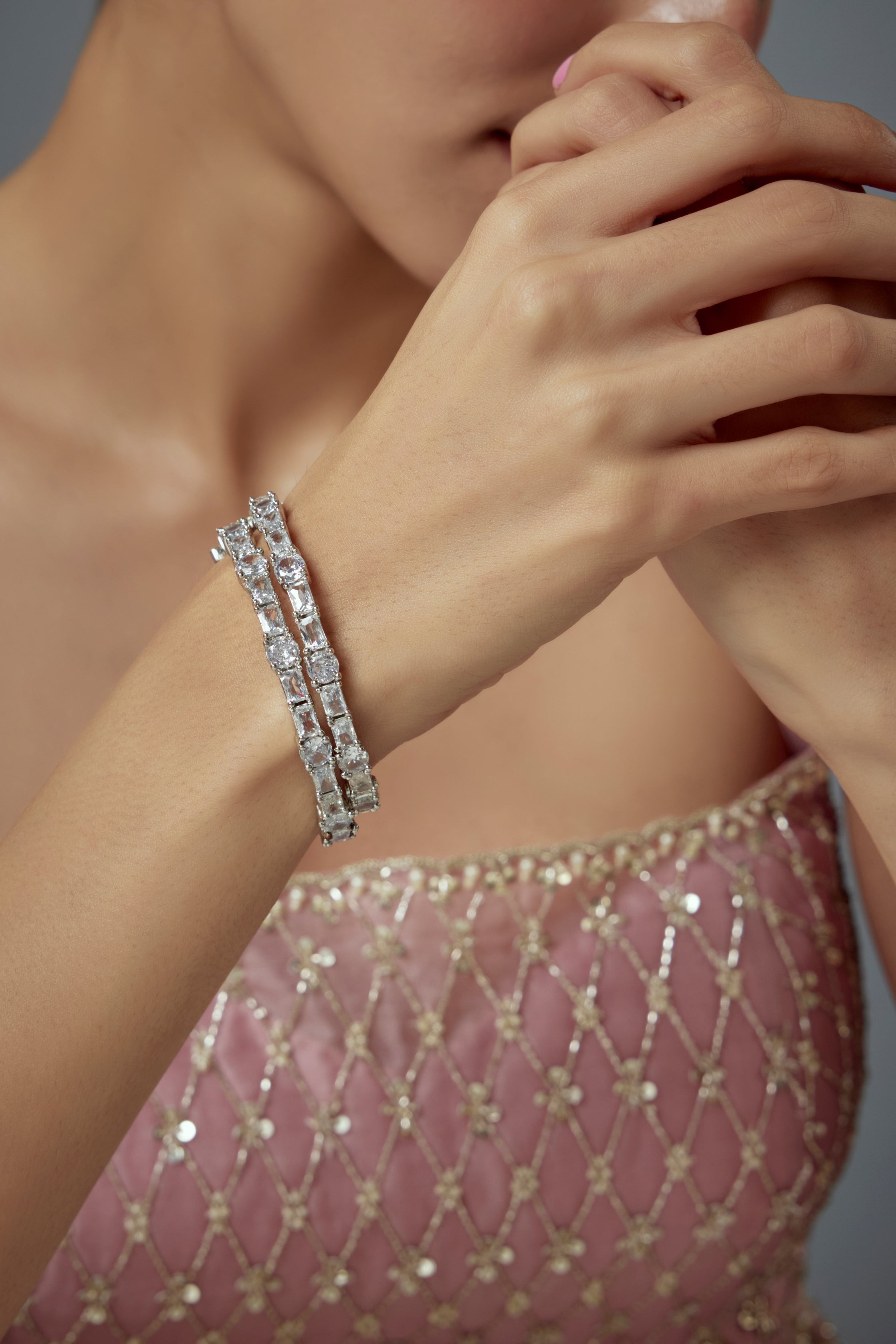 - Design: A stunning dual-row bracelet adorned with round-cut stones, offering a classic and luxurious appeal.