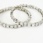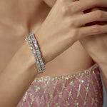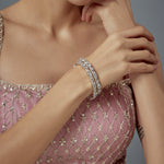A dazzling dual-row bracelet featuring round-cut stones, radiating elegance and sophistication. Its timeless design complements formal attire, adding a touch of sparkle to any special occasion.