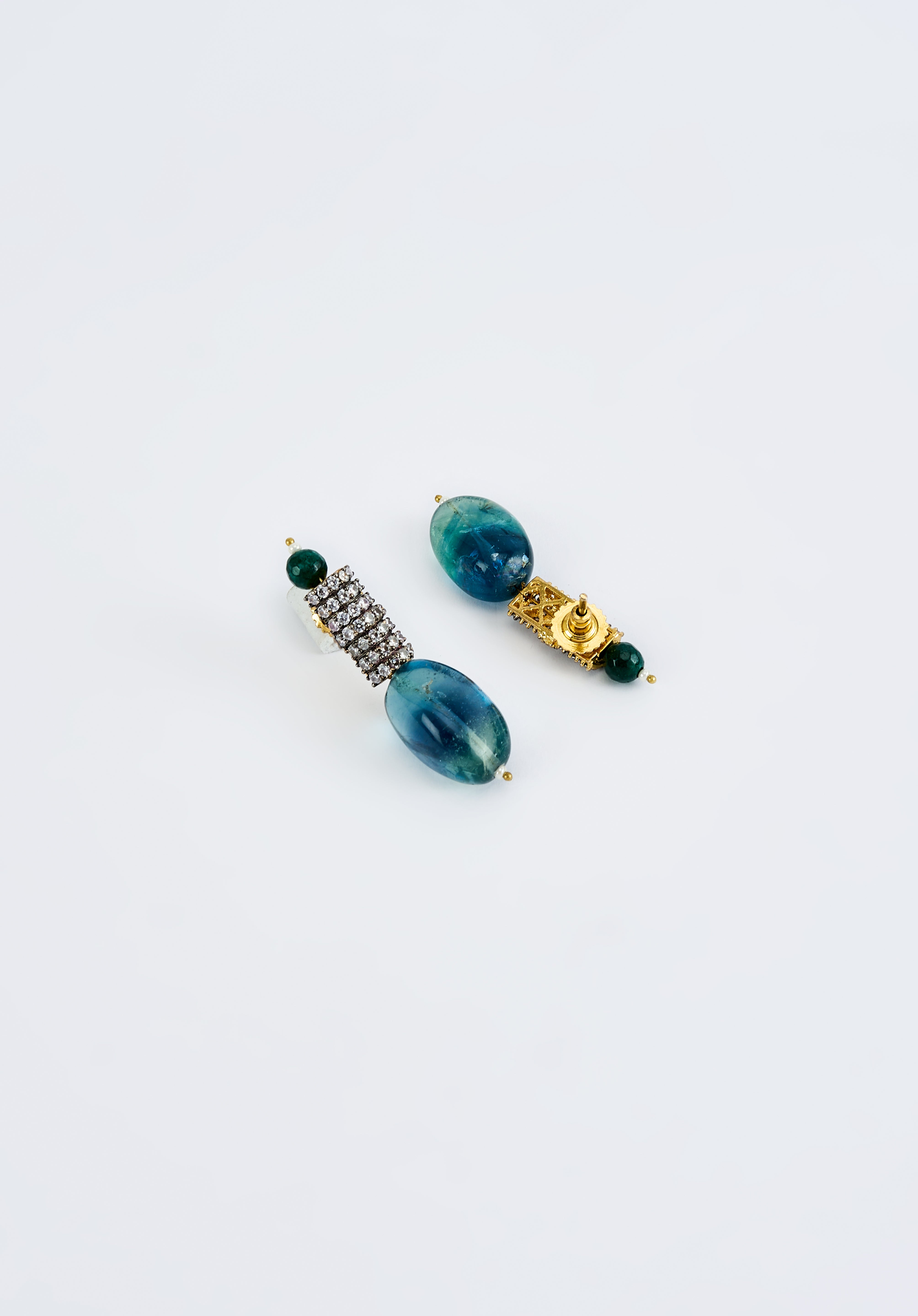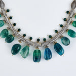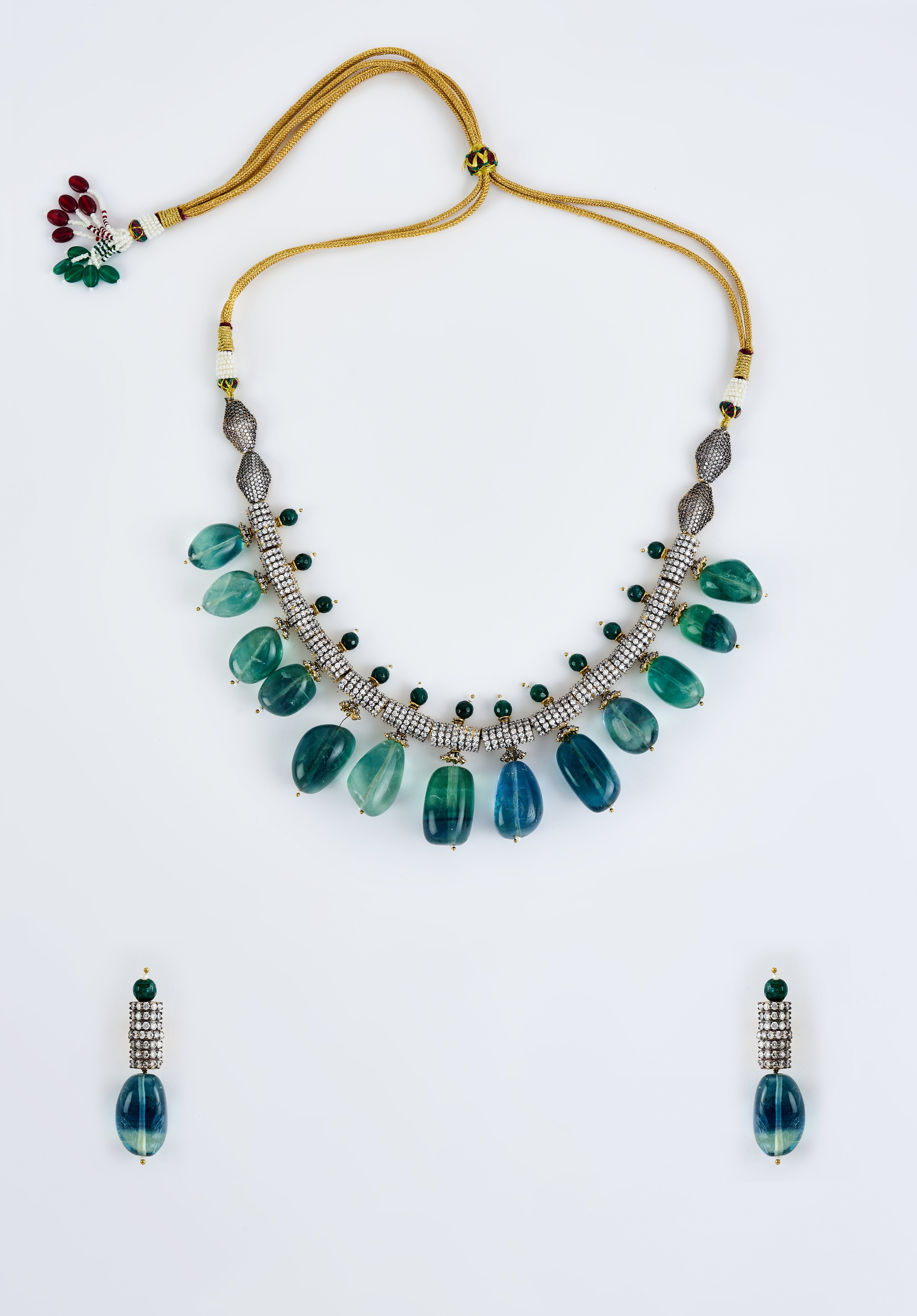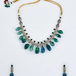• Elegant Design: Necklace and earrings set with blue teardrop beads, pearls, and intricate gold detailing for a sophisticated look.