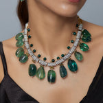 Florence Green Womens Zircon Short Necklace Set with Pair of Earrings (Freesize)