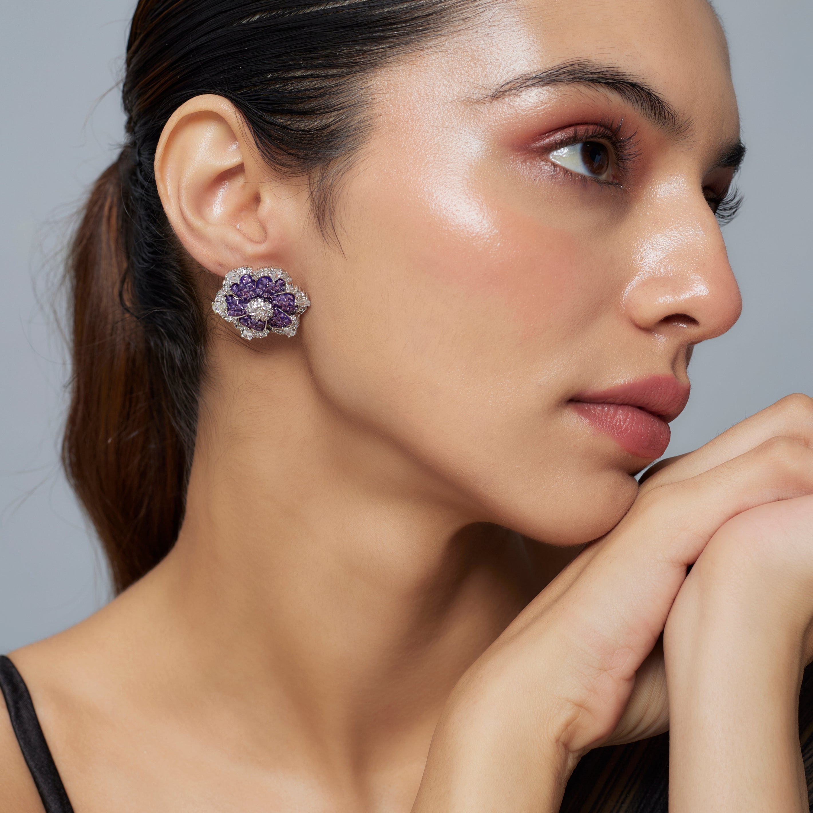 Florence Silver Plated Purple Womens Zircon Pair of Stud Earrings (Freesize)