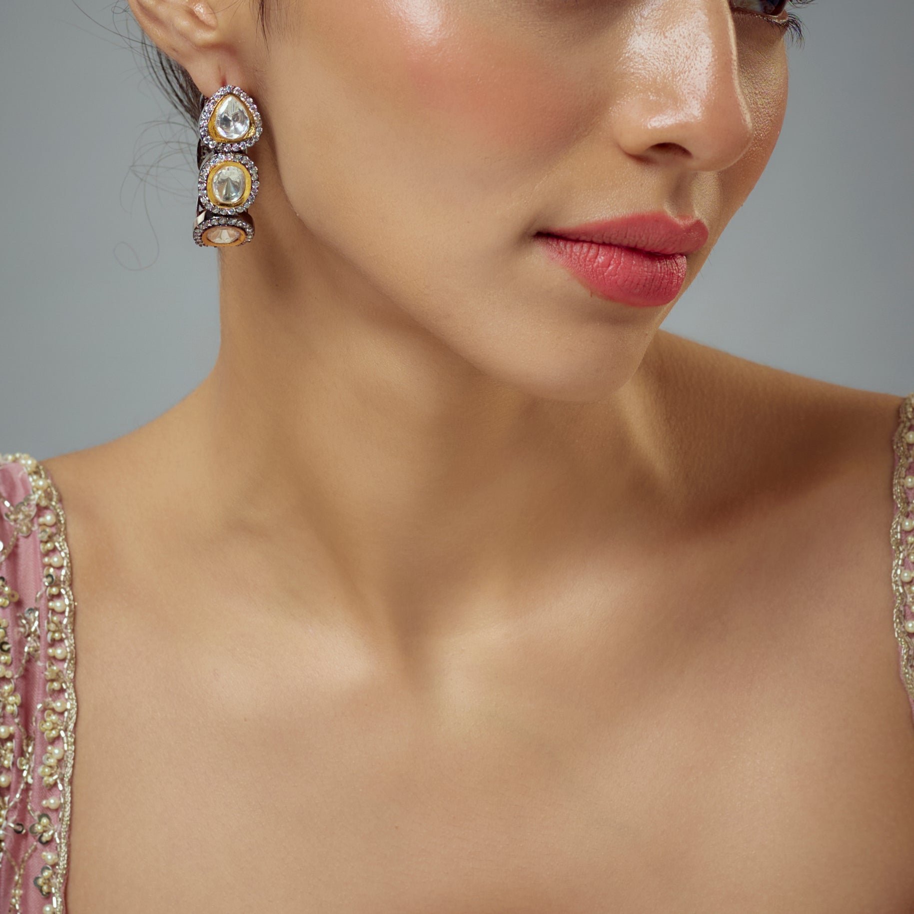 Florence Silver Plated Gold Zircon Womens Pair of Hoop Earrings (Freesize)