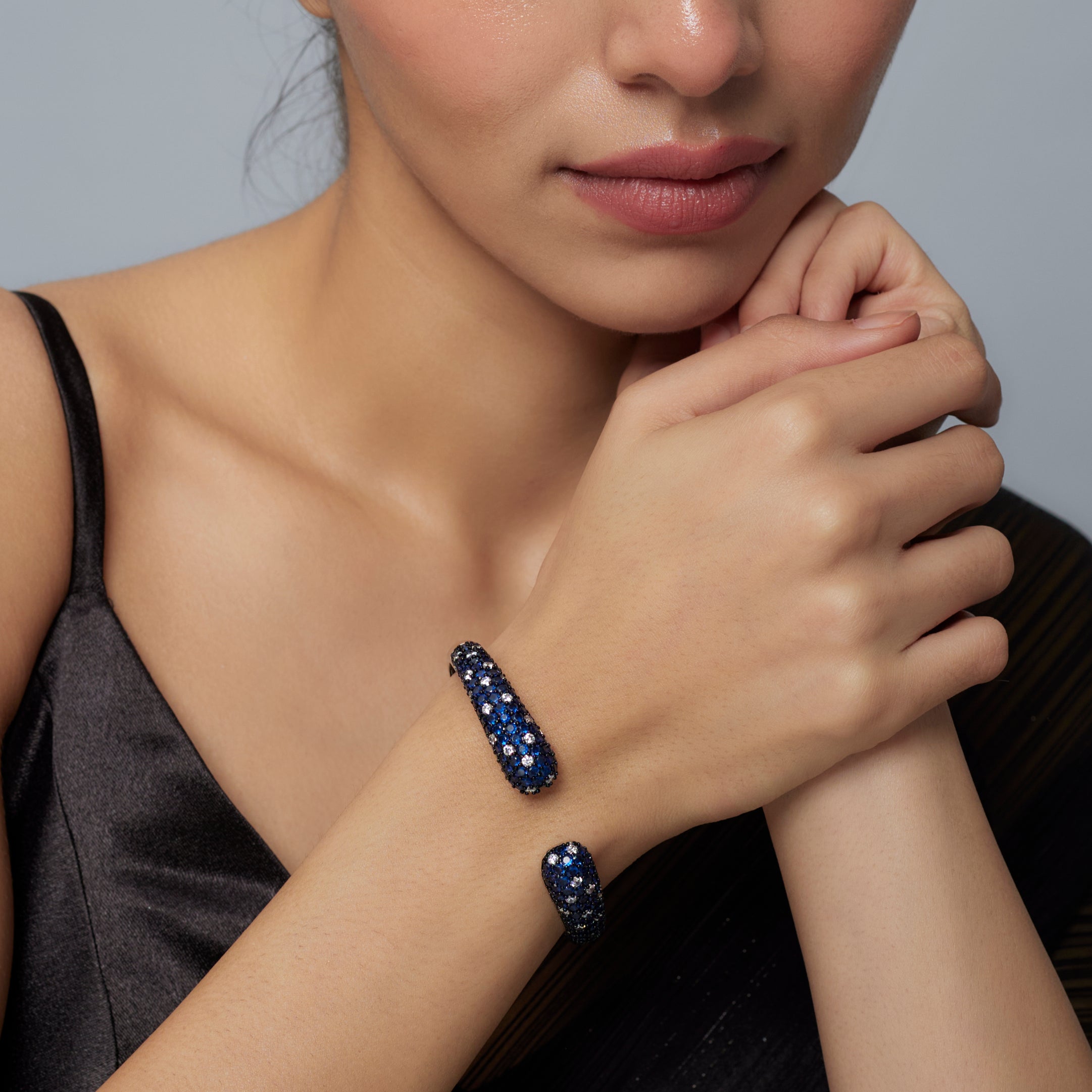 Zia Silver Plated Blue Womens Zircon Kadas (Freesize)