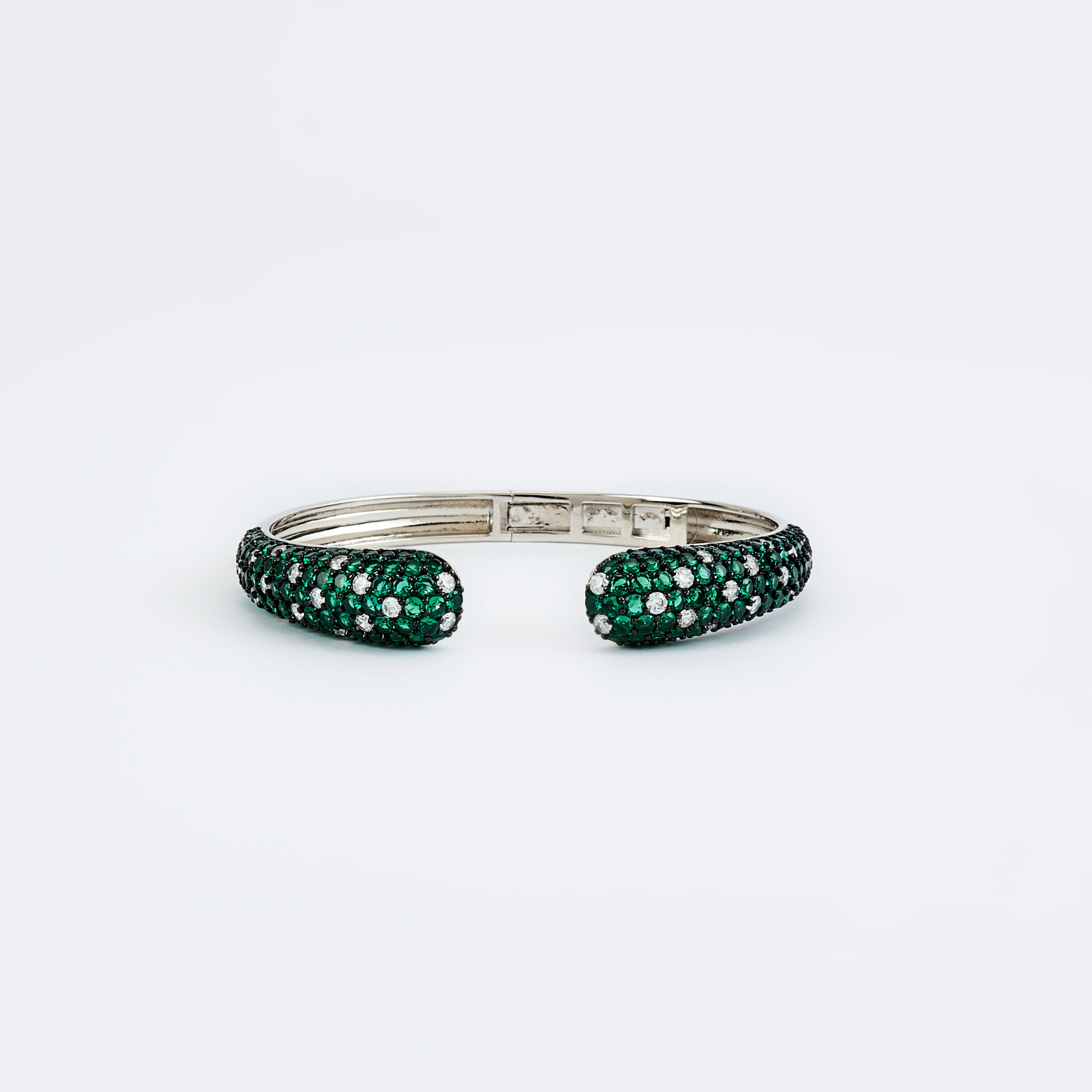 Zia Silver Plated Green Zircon Womens Pair of Bangles
