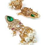 Gold Plated Green Womens Kundan Polki Necklace Set with Pair of Earrings & Maangtikka