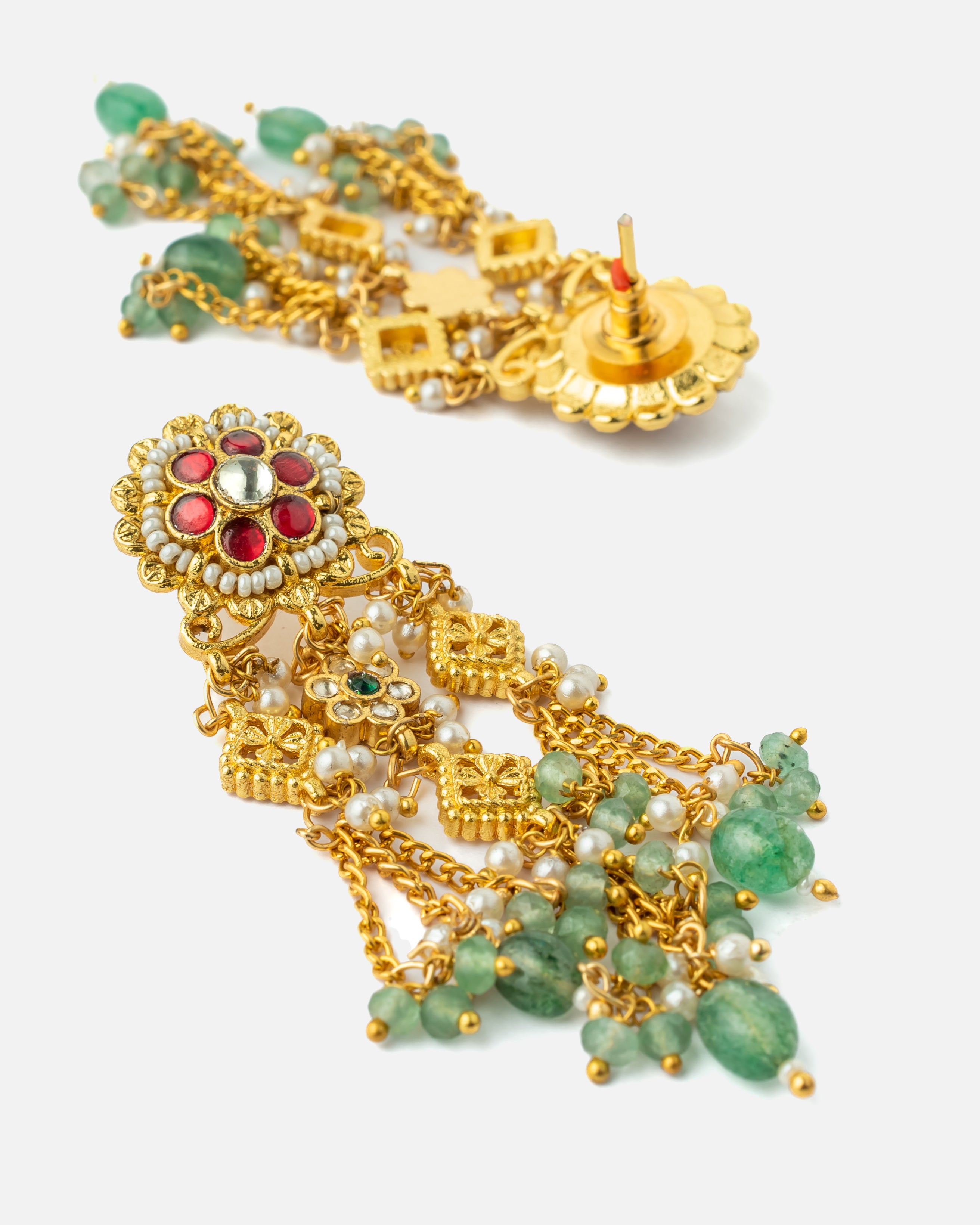 Gold Plated Green Womens Kundan Polki Necklace Set with Pair of Earrings