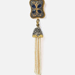 Gold Plated Blue Womens Pair of Tassel Earrings