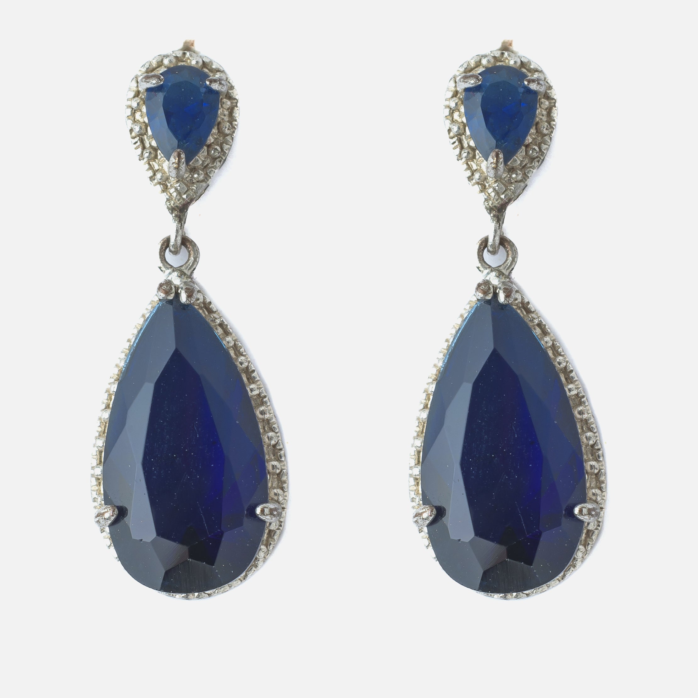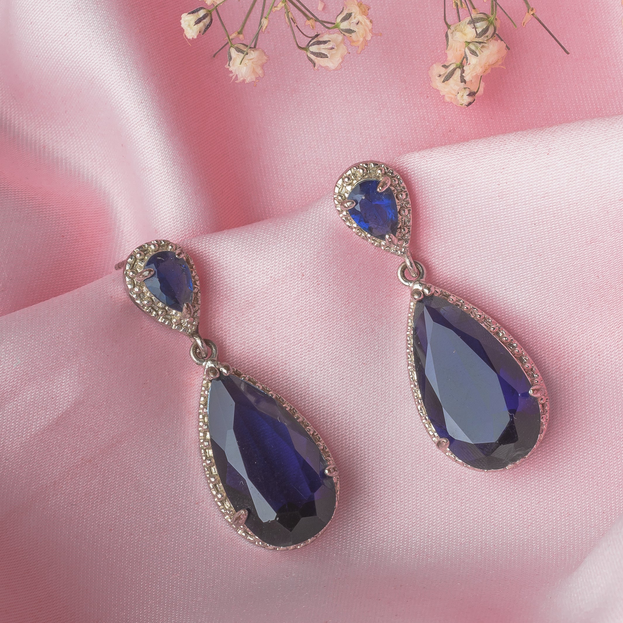 Silver Plated Blue Womens Pair of Dangle Earrings