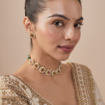 Saadgi Gold Plated Green & Pink Womens Kundan Polki Choker Necklace Set with 2 Pair of Earrings