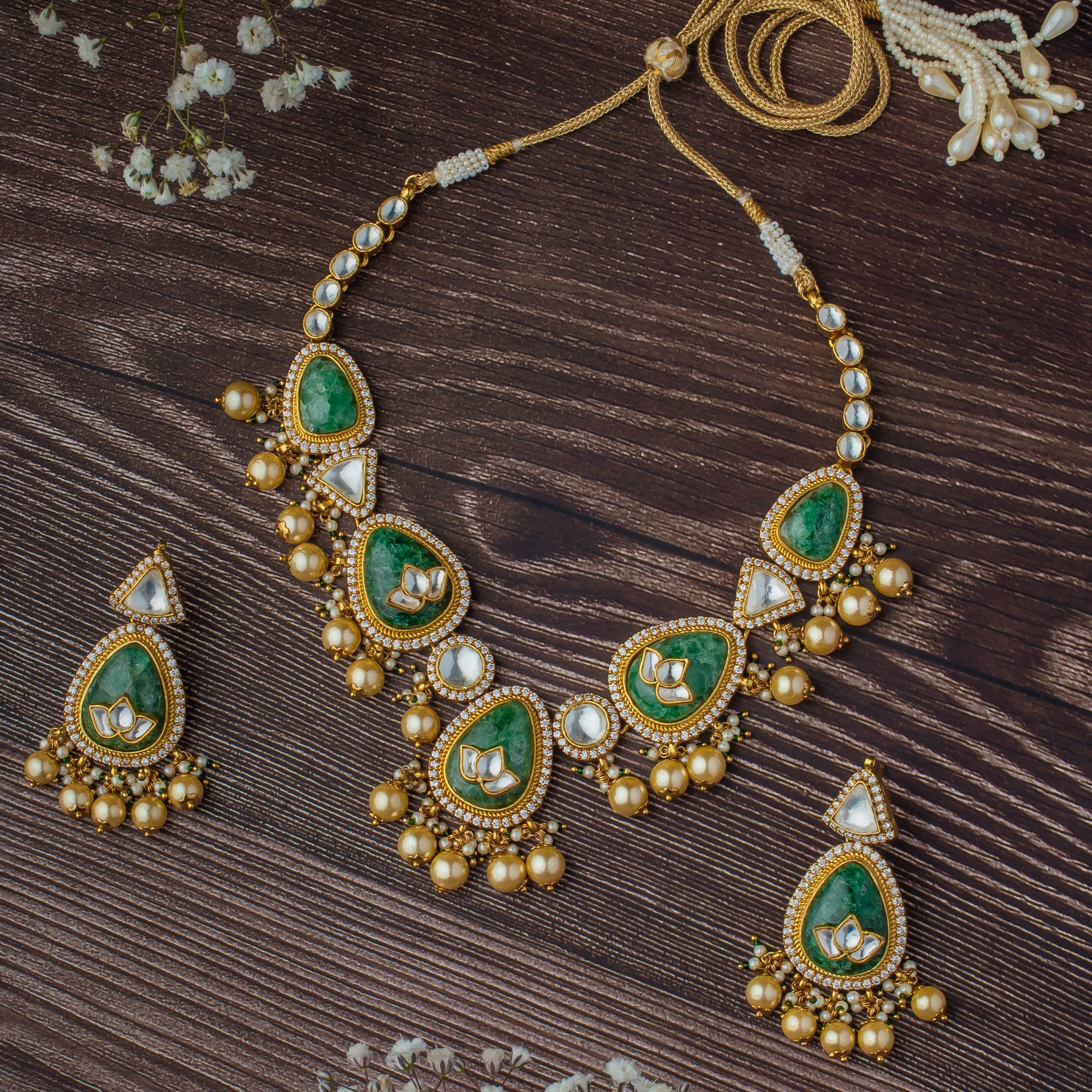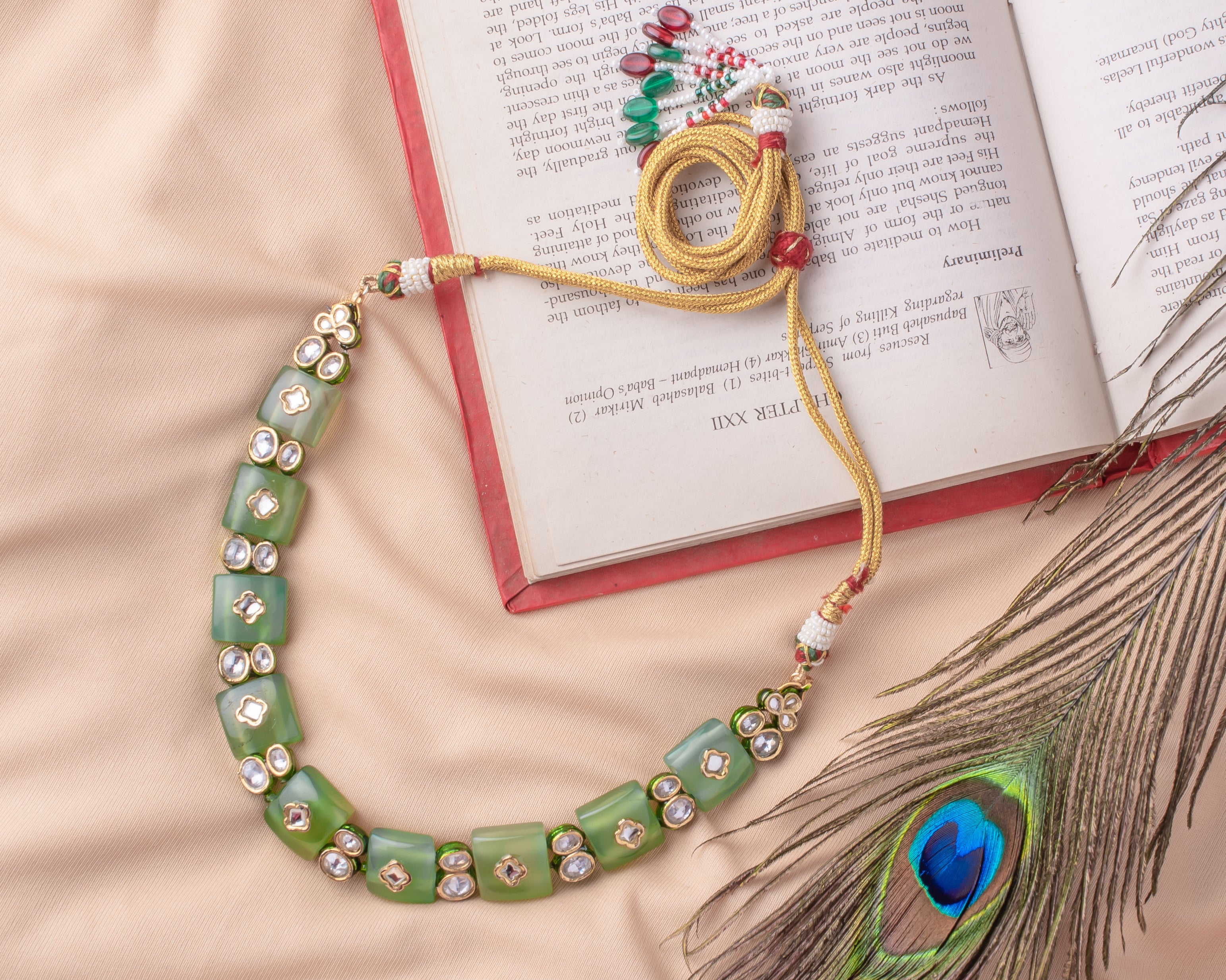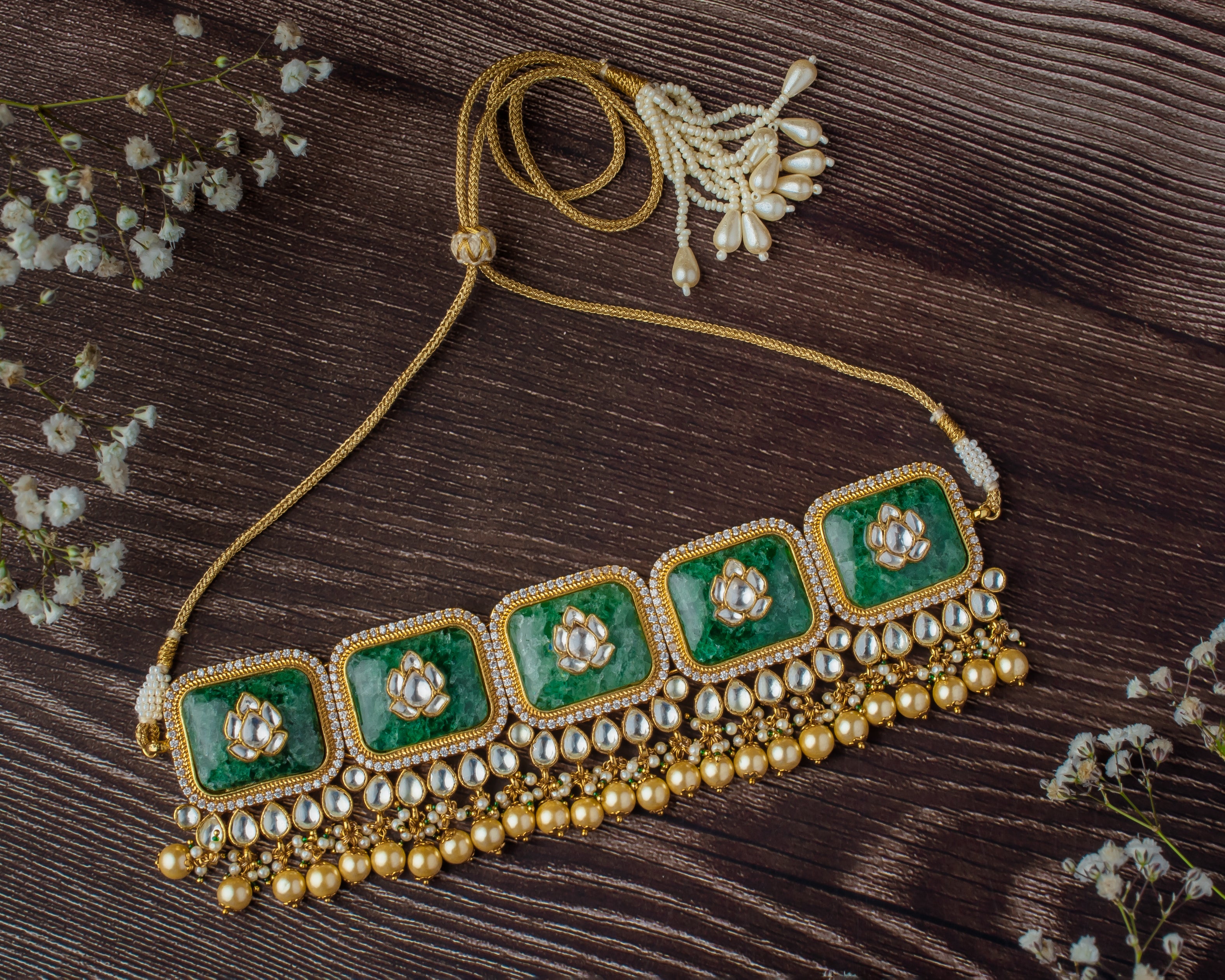 Saadgi Green Womens Contemporary Choker Necklace Set