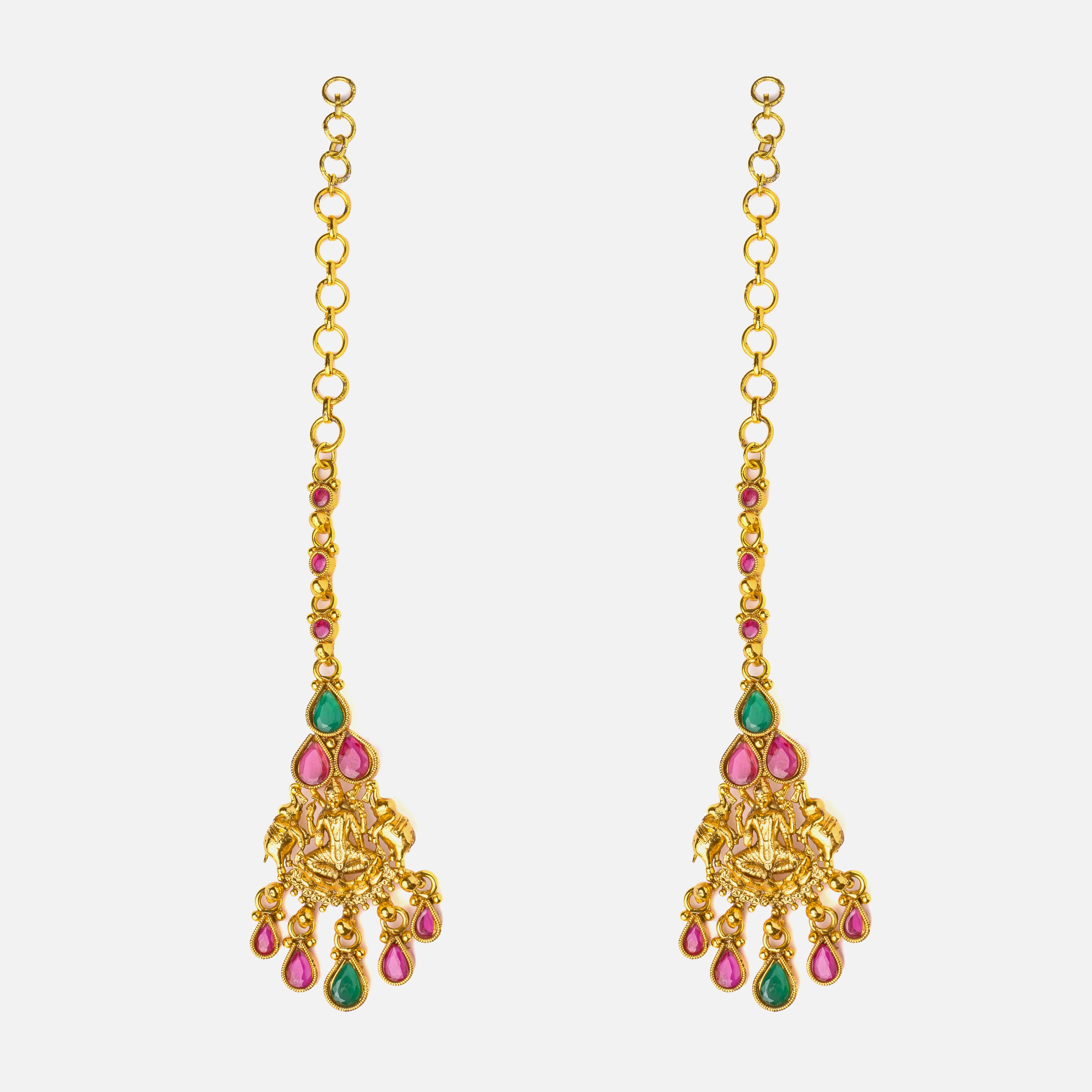 Saadgi Gold Plated Green Womens Pair of Drop Earrings