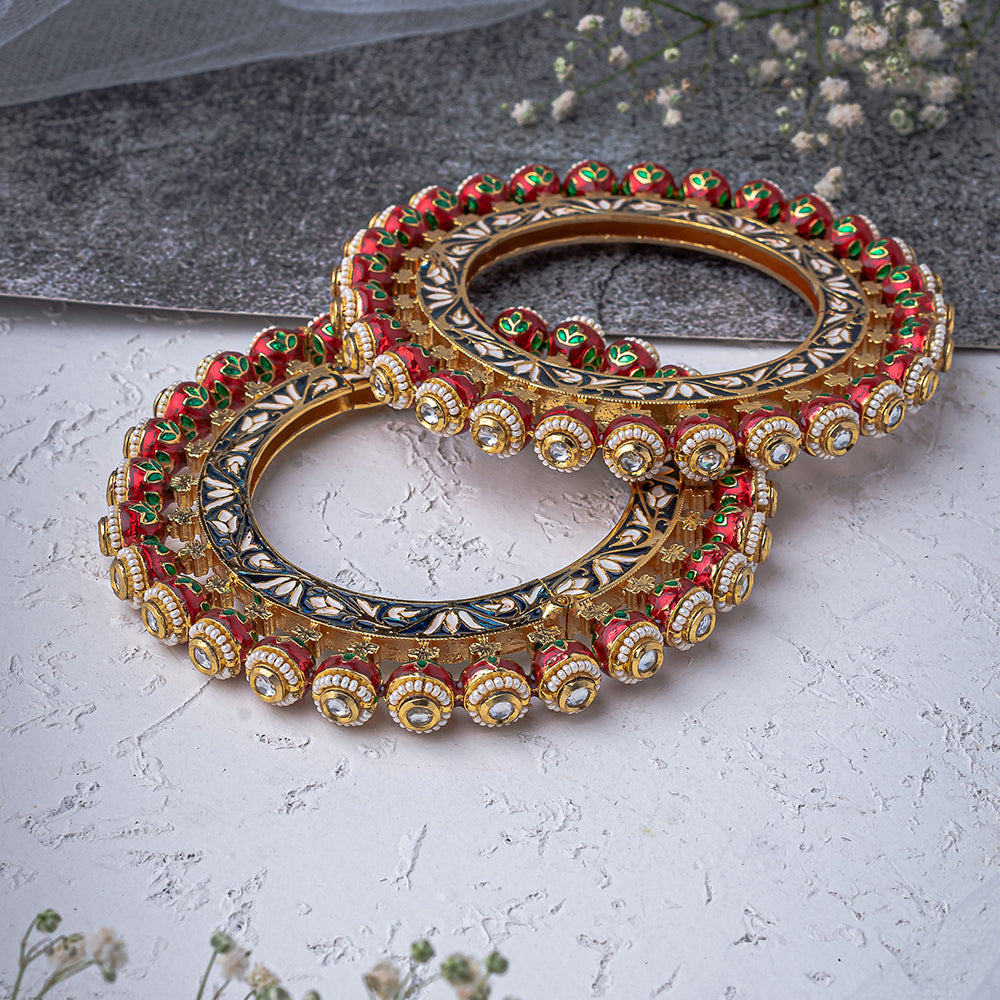 Saadgi Gold Plated Red Kundan, Polki Womens Pair of Bangle