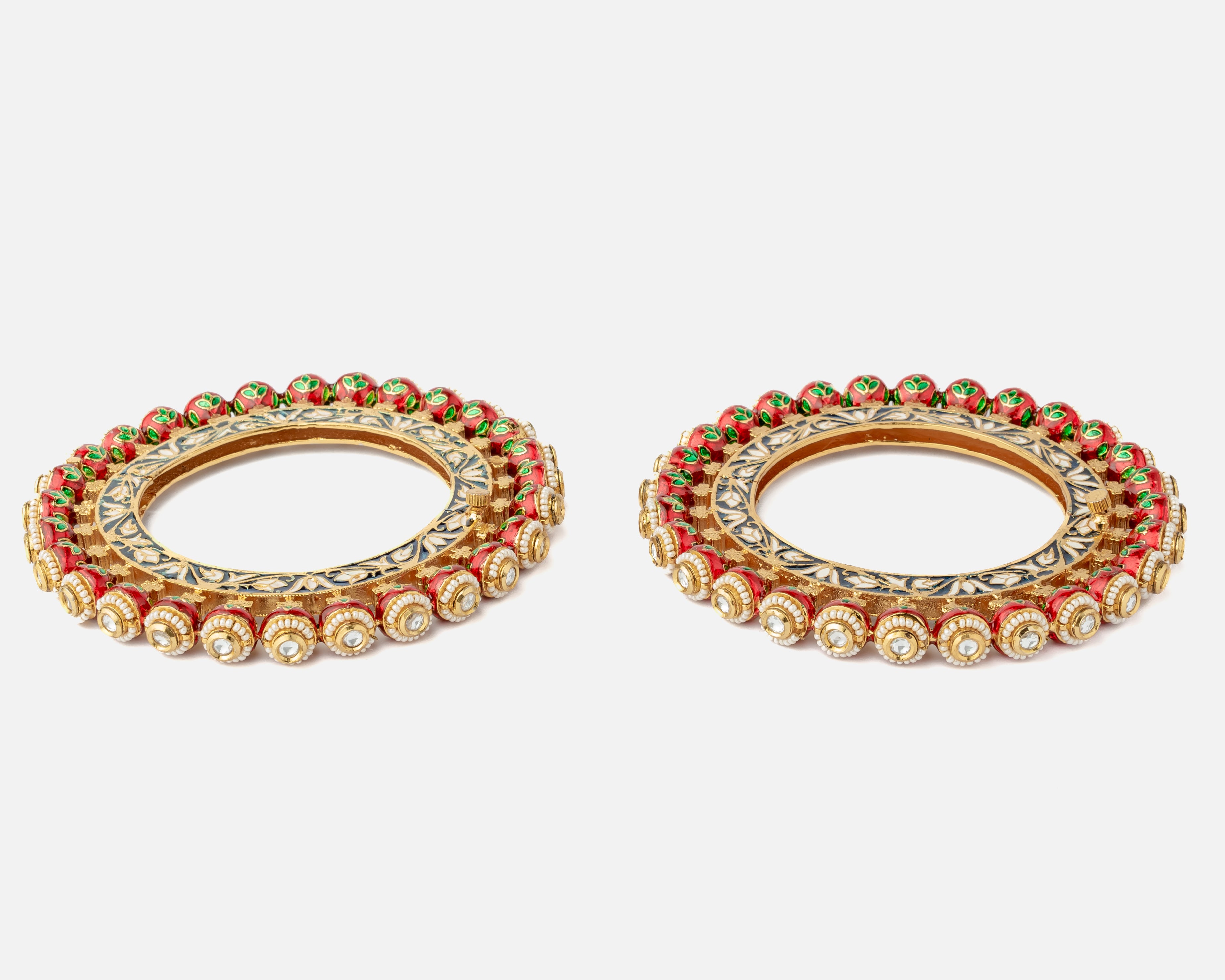Saadgi Gold Plated Multicolored Womens Kundan, Polki Kadas (2.4,2.6)