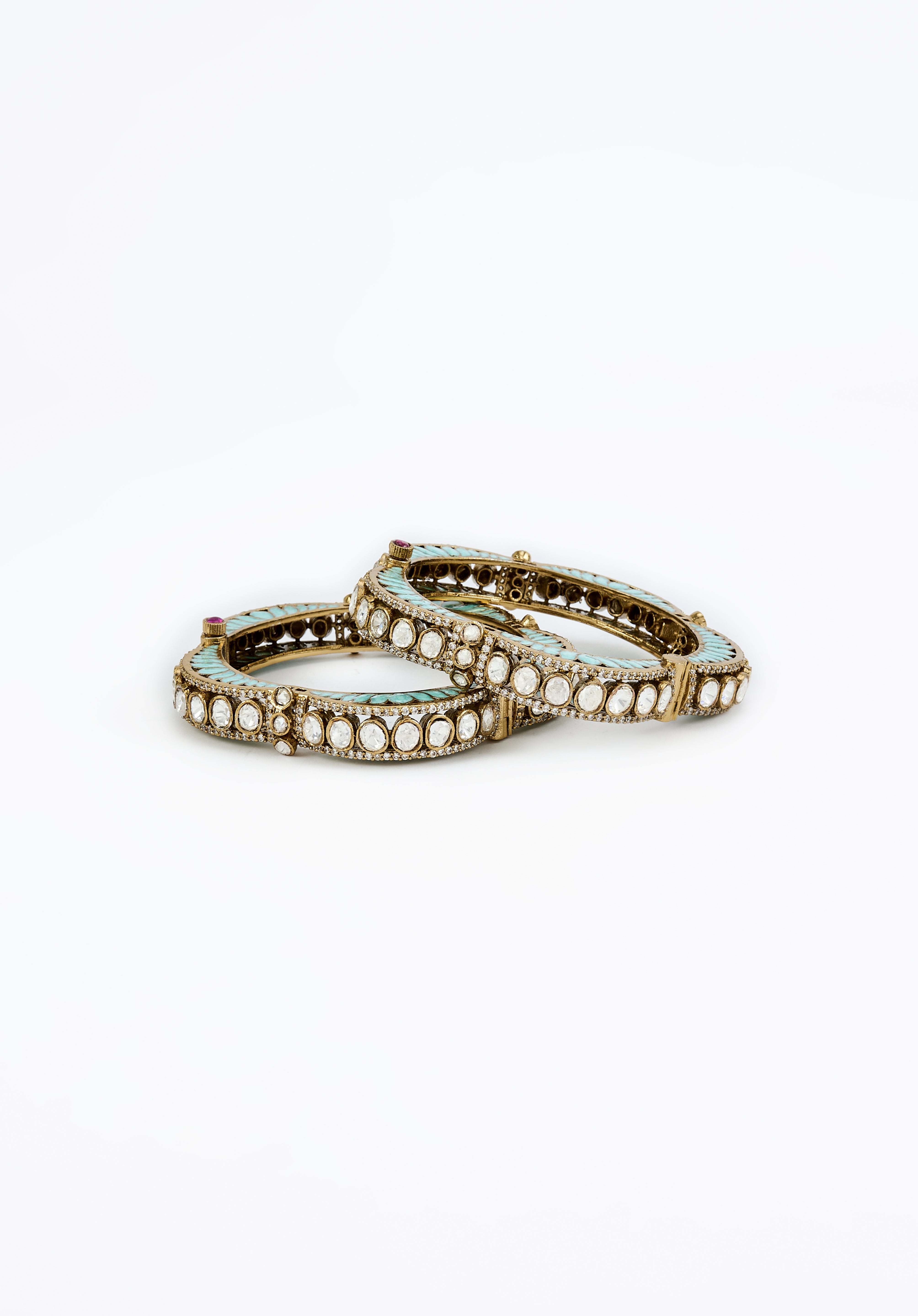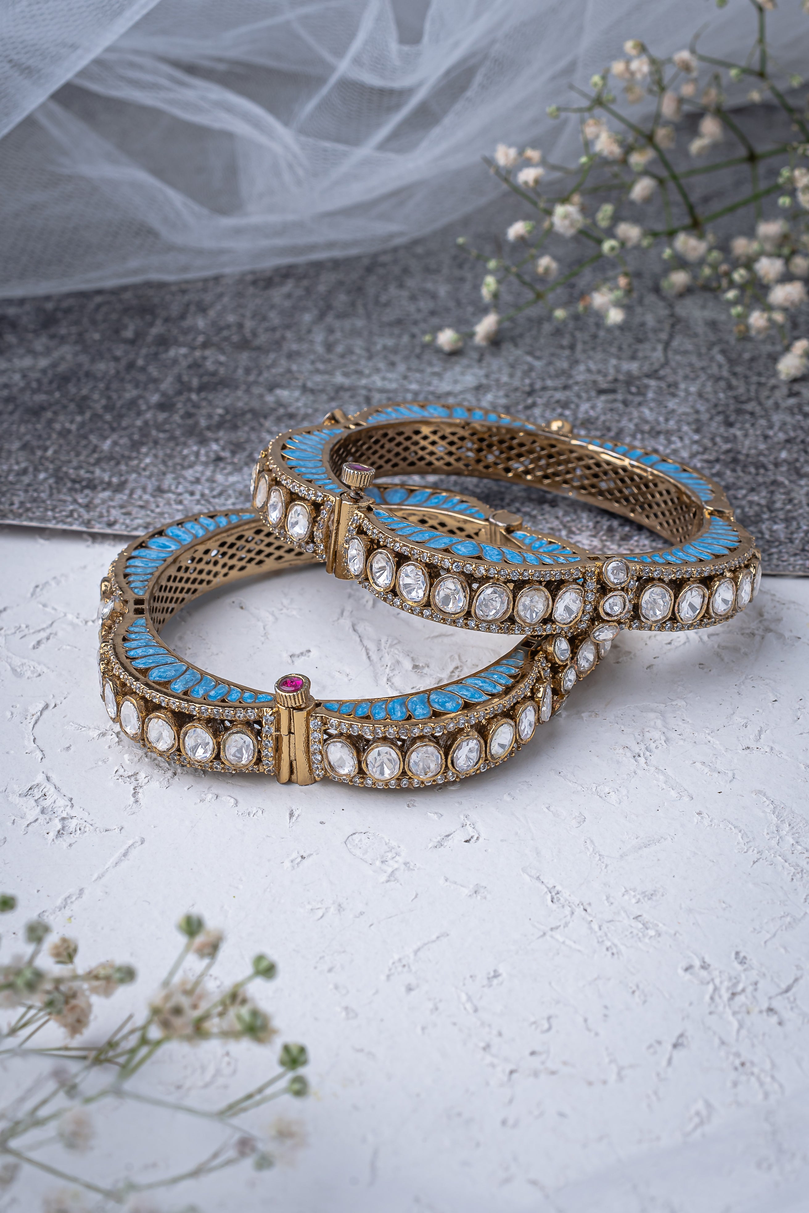 - Exquisite Design: Handcrafted bangles with intricate turquoise enamel detailing and sparkling white stones.