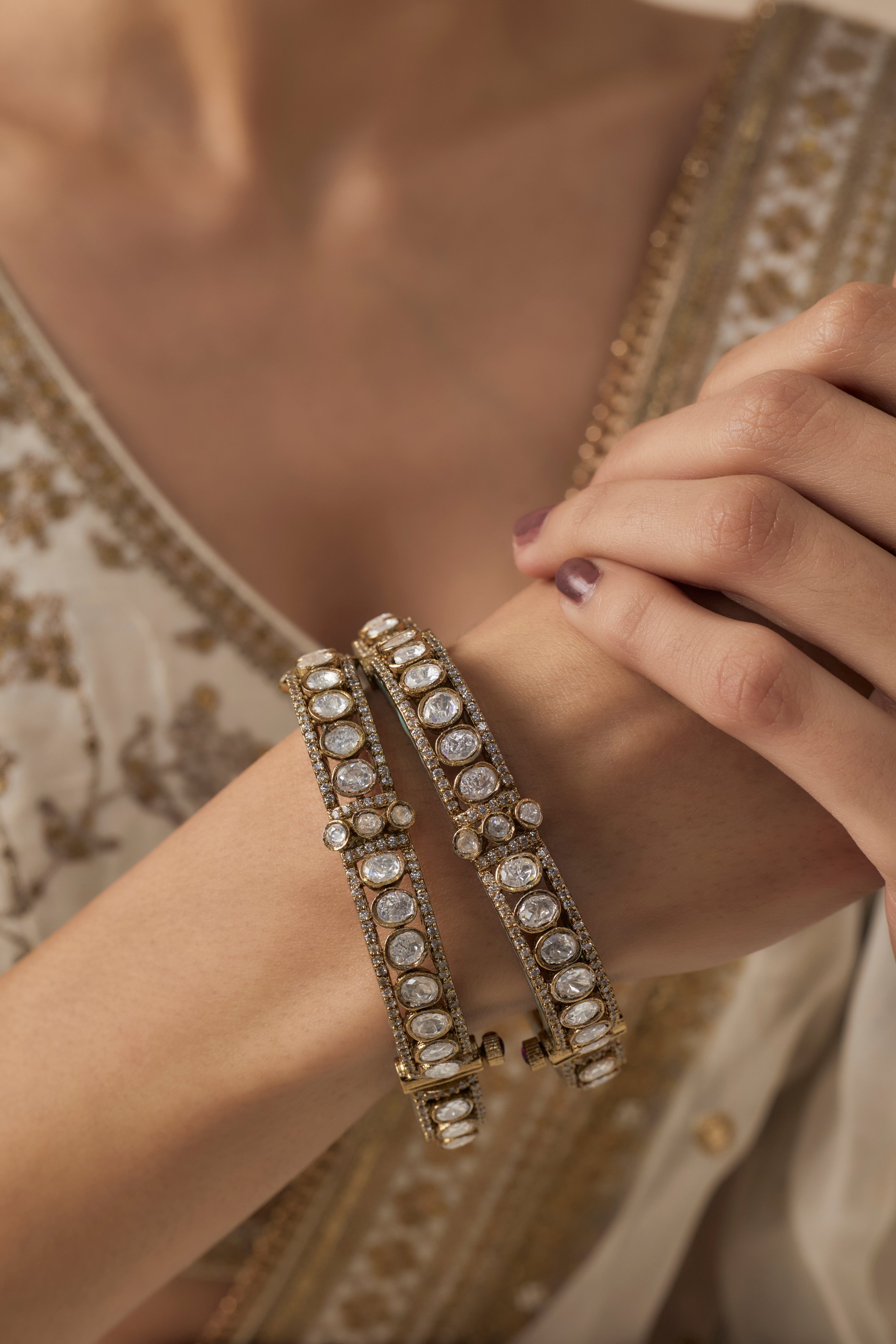 Florence Gold Plated Green Womens Kundan, Polki Pair of Bangles