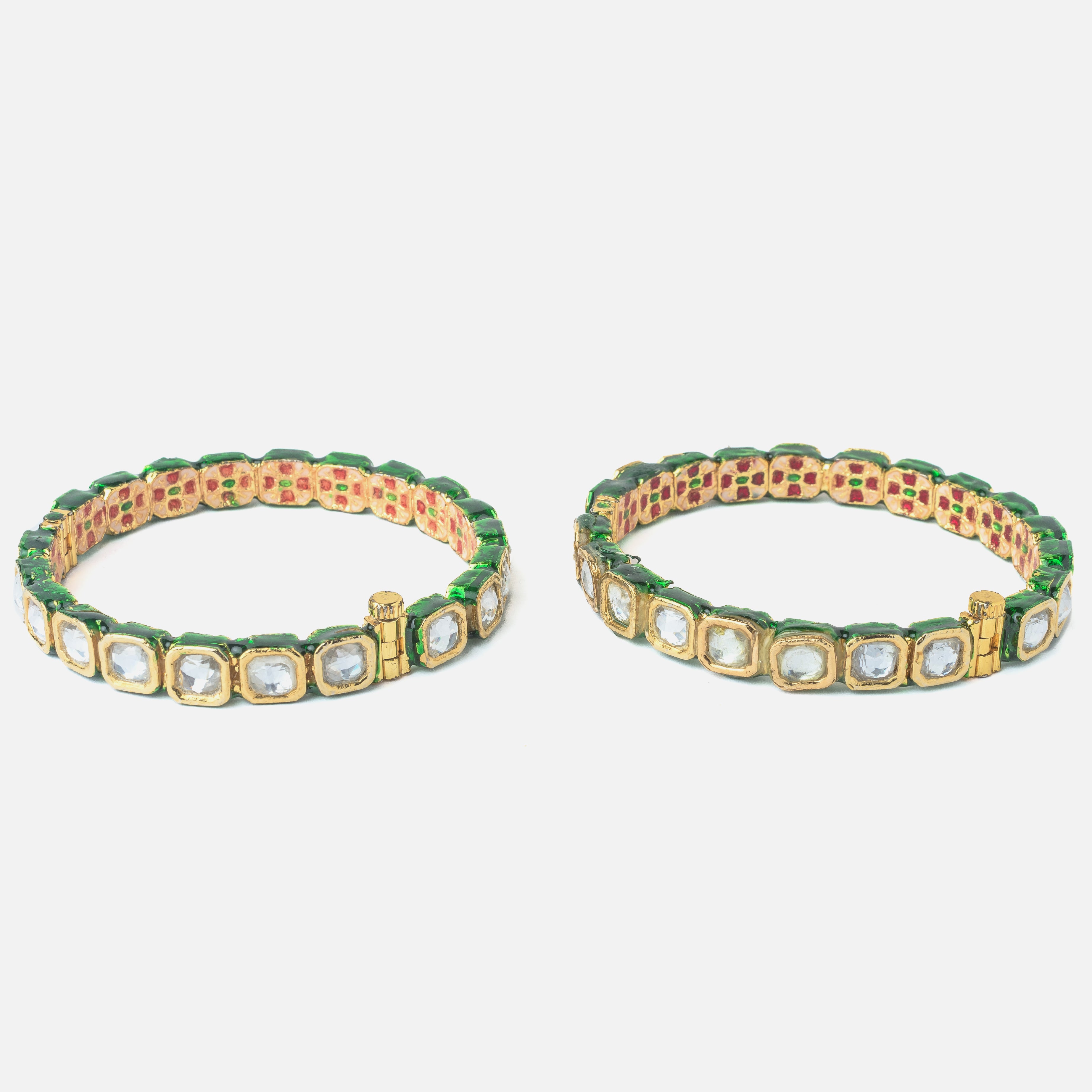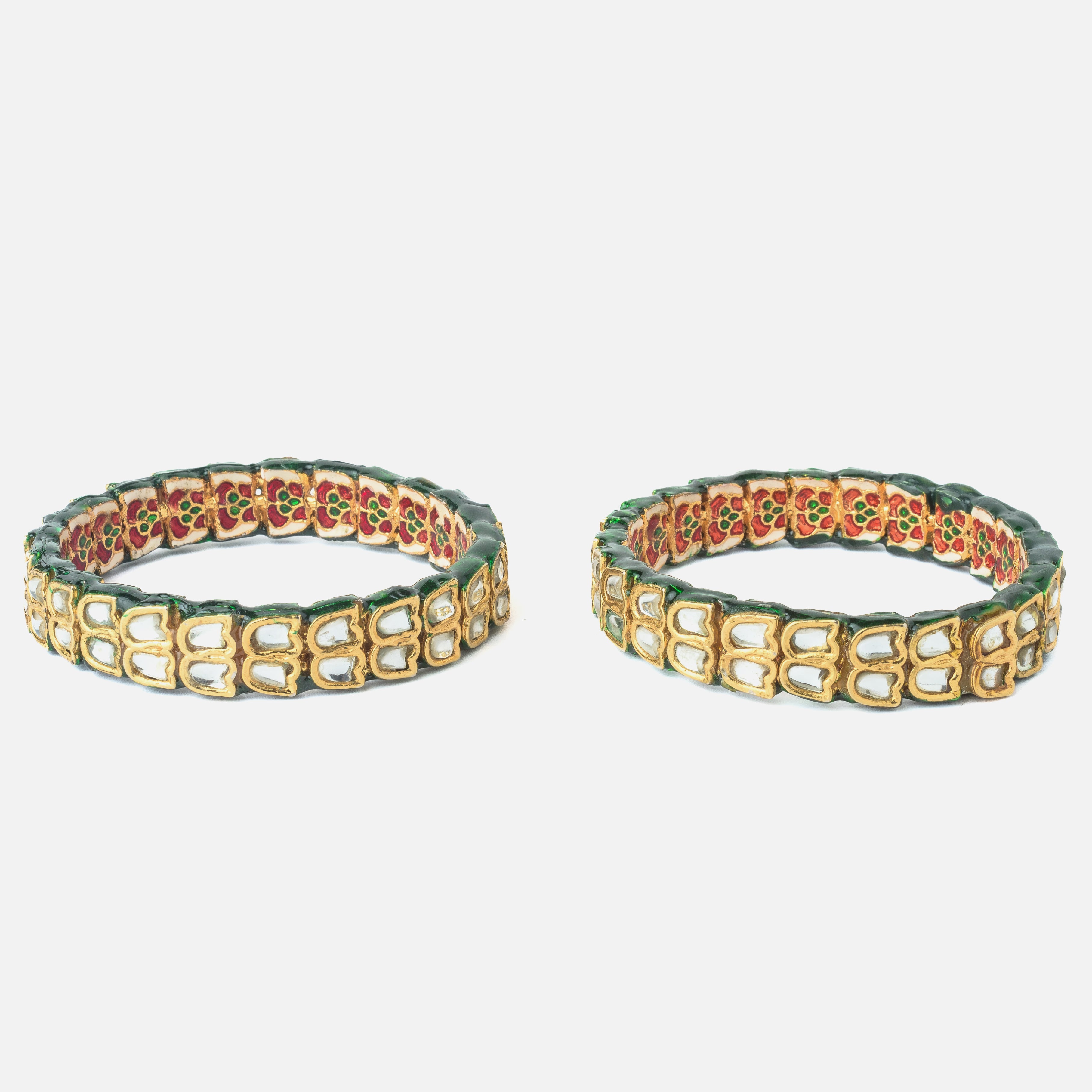 Gold Plated Green Colored Kundan, Polki Womens Pair of Bangles