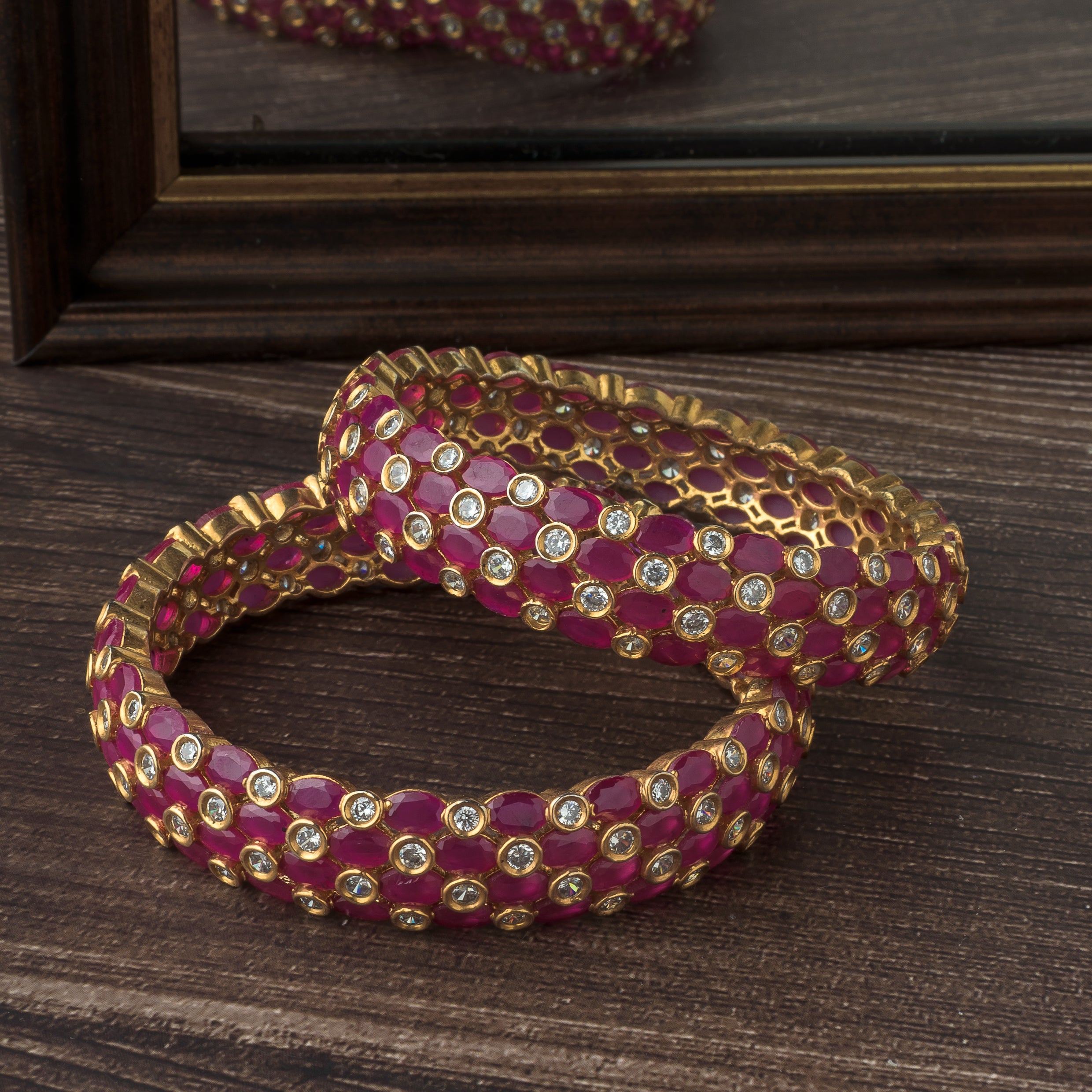 Gold Plated Synthetic Stone Womens Pair of Bangles