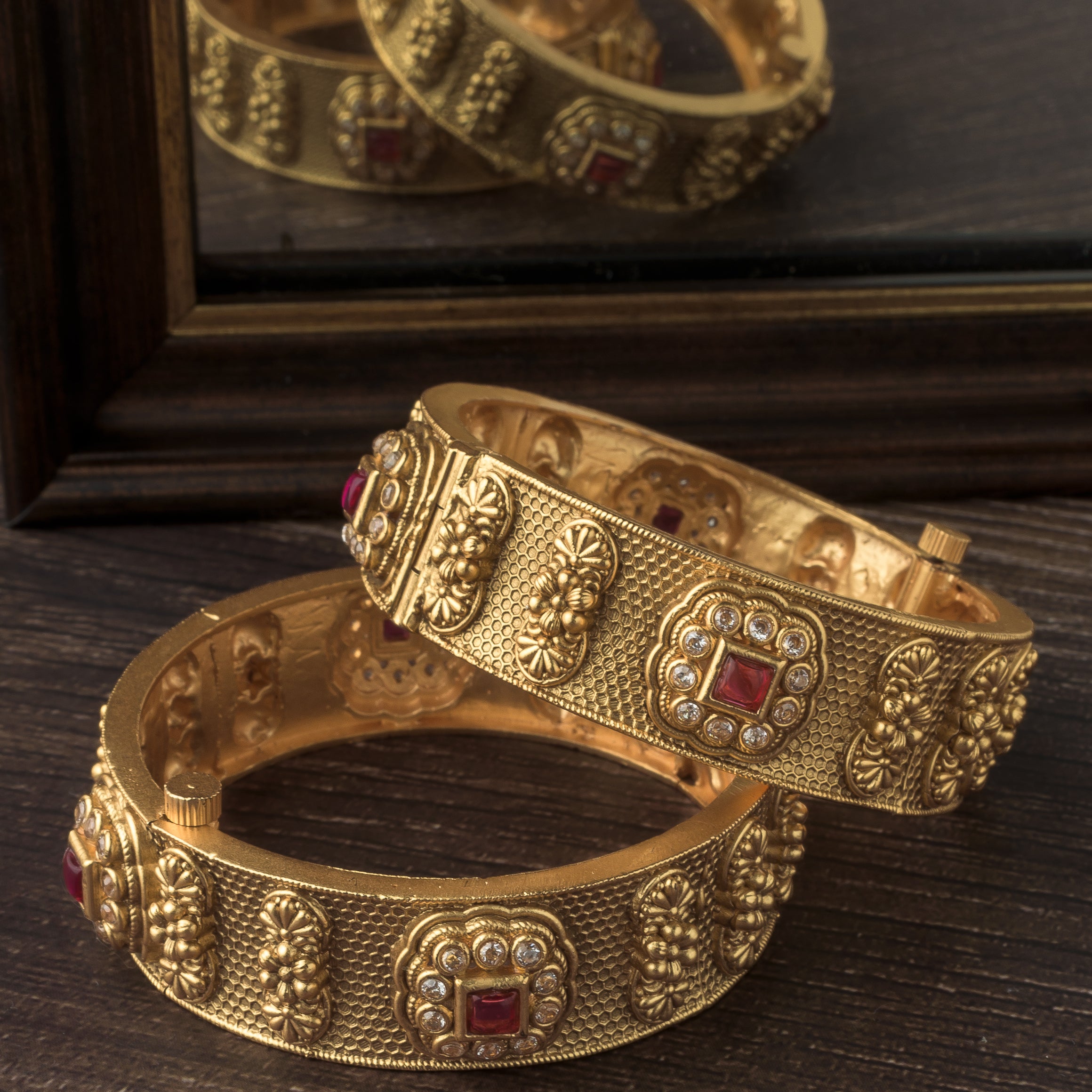 Gold Plated Red Colored Temple Womens Pair of Bangles