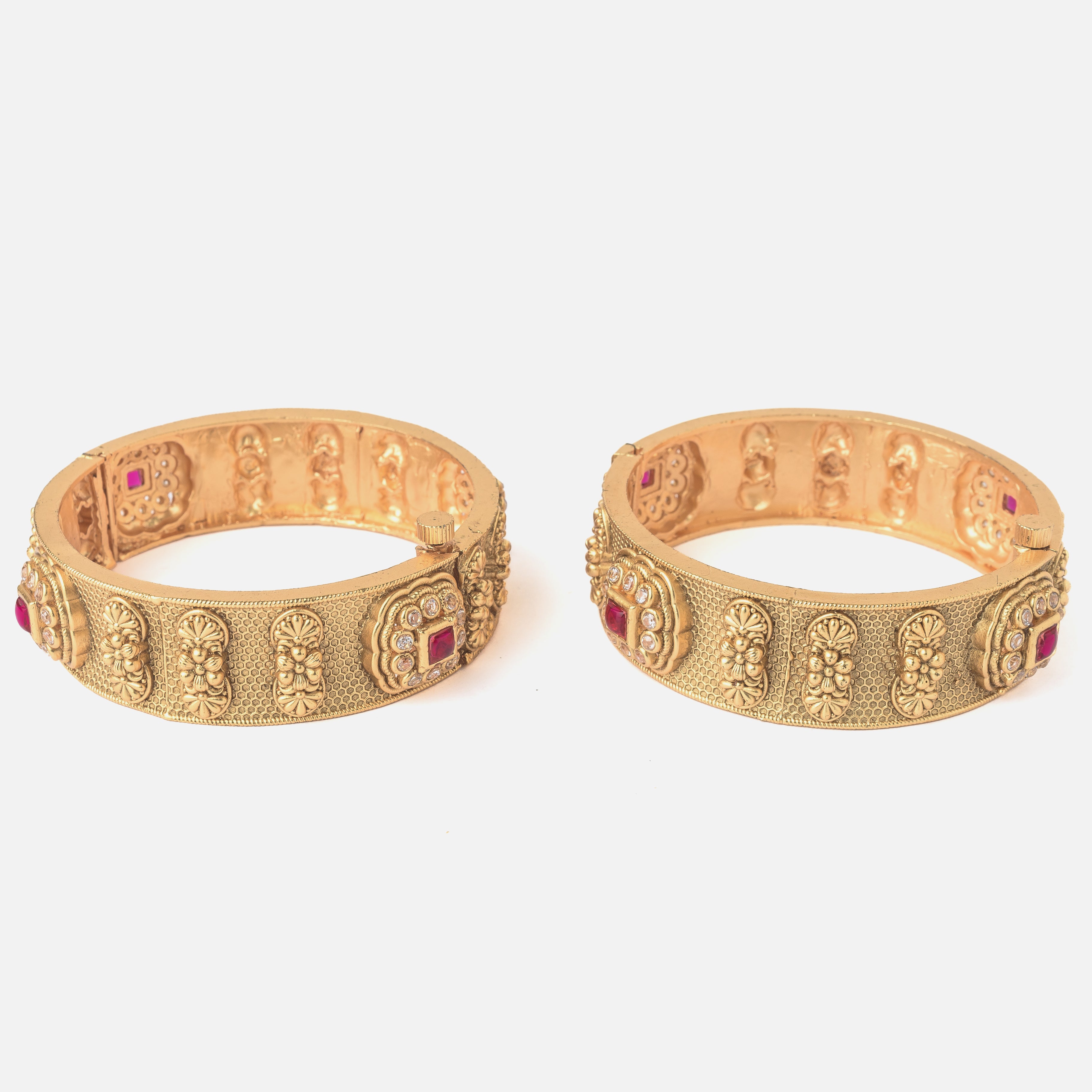 Gold Plated Temple Womens Pair of Bangles
