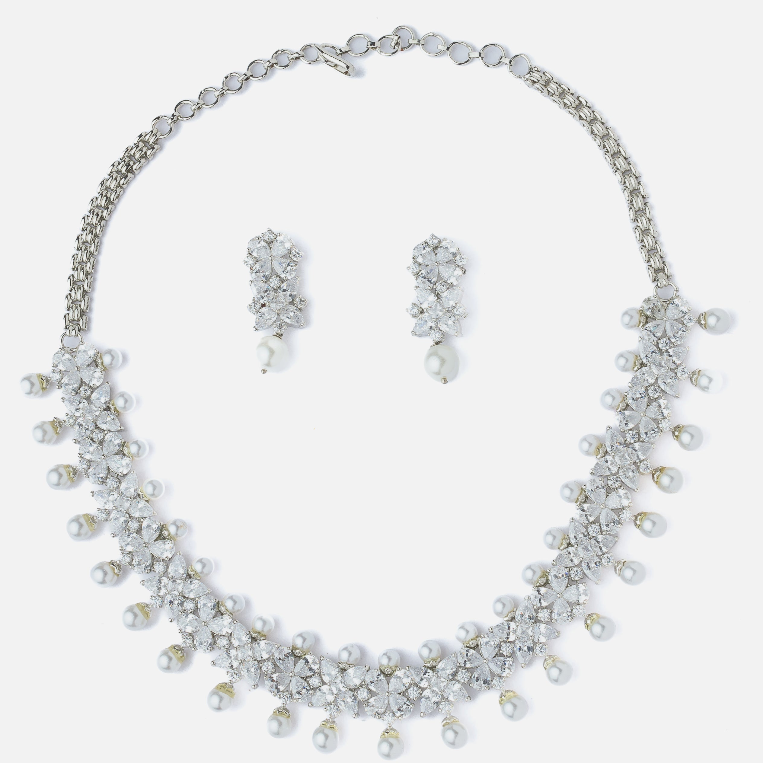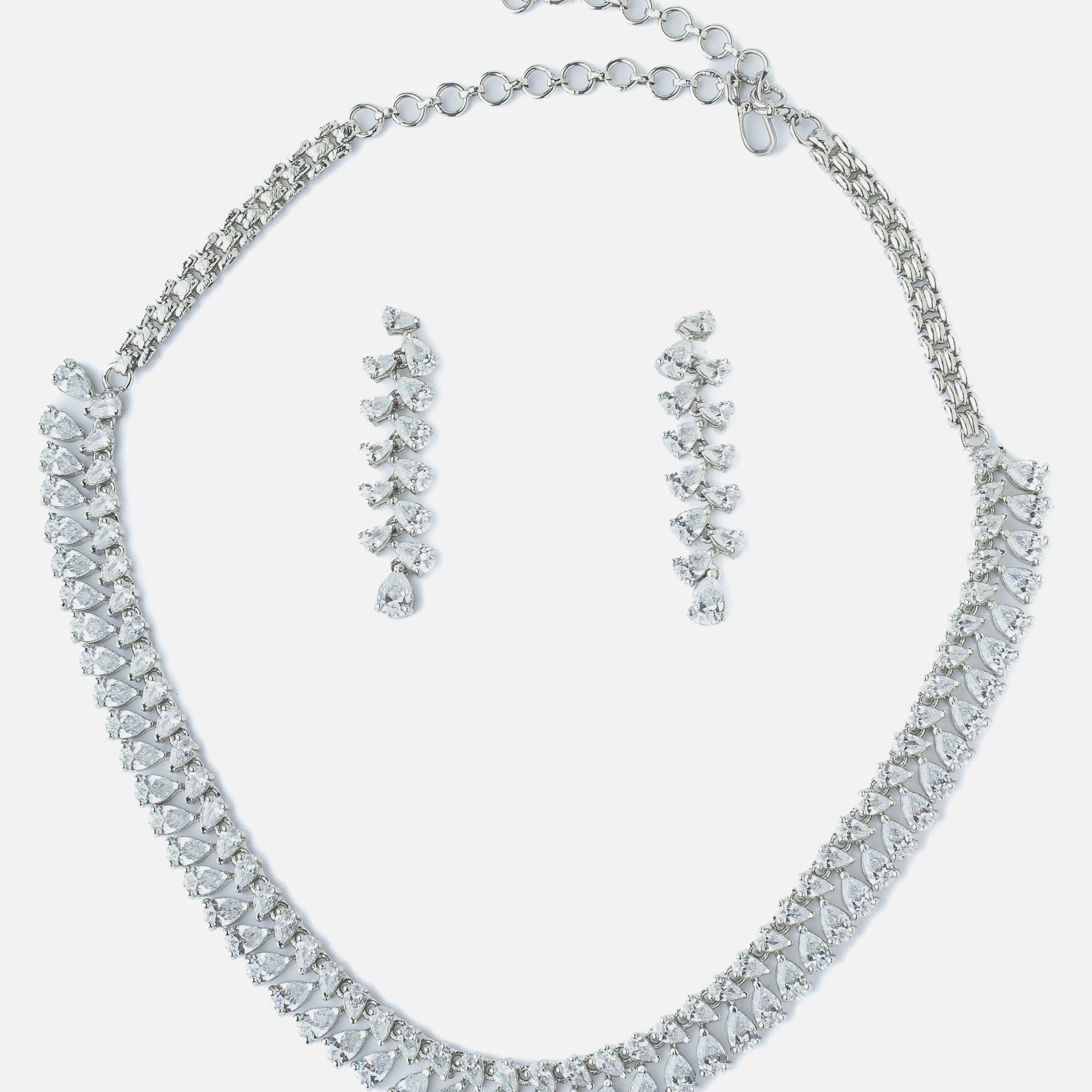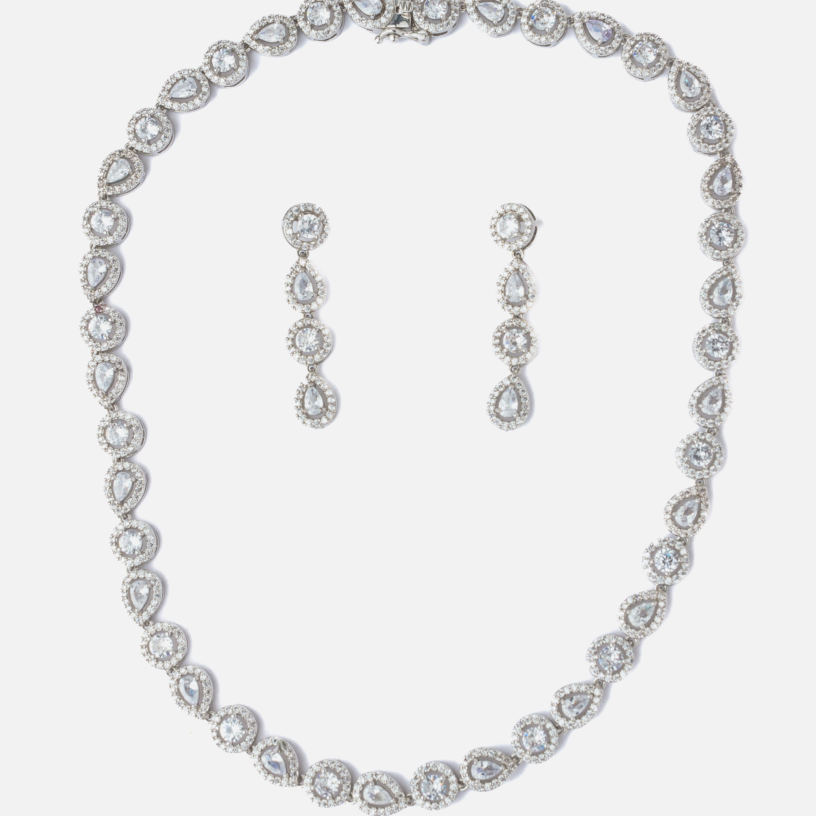 Zia Silver Plated Womens Zircon Necklace Set with Pair of earrings