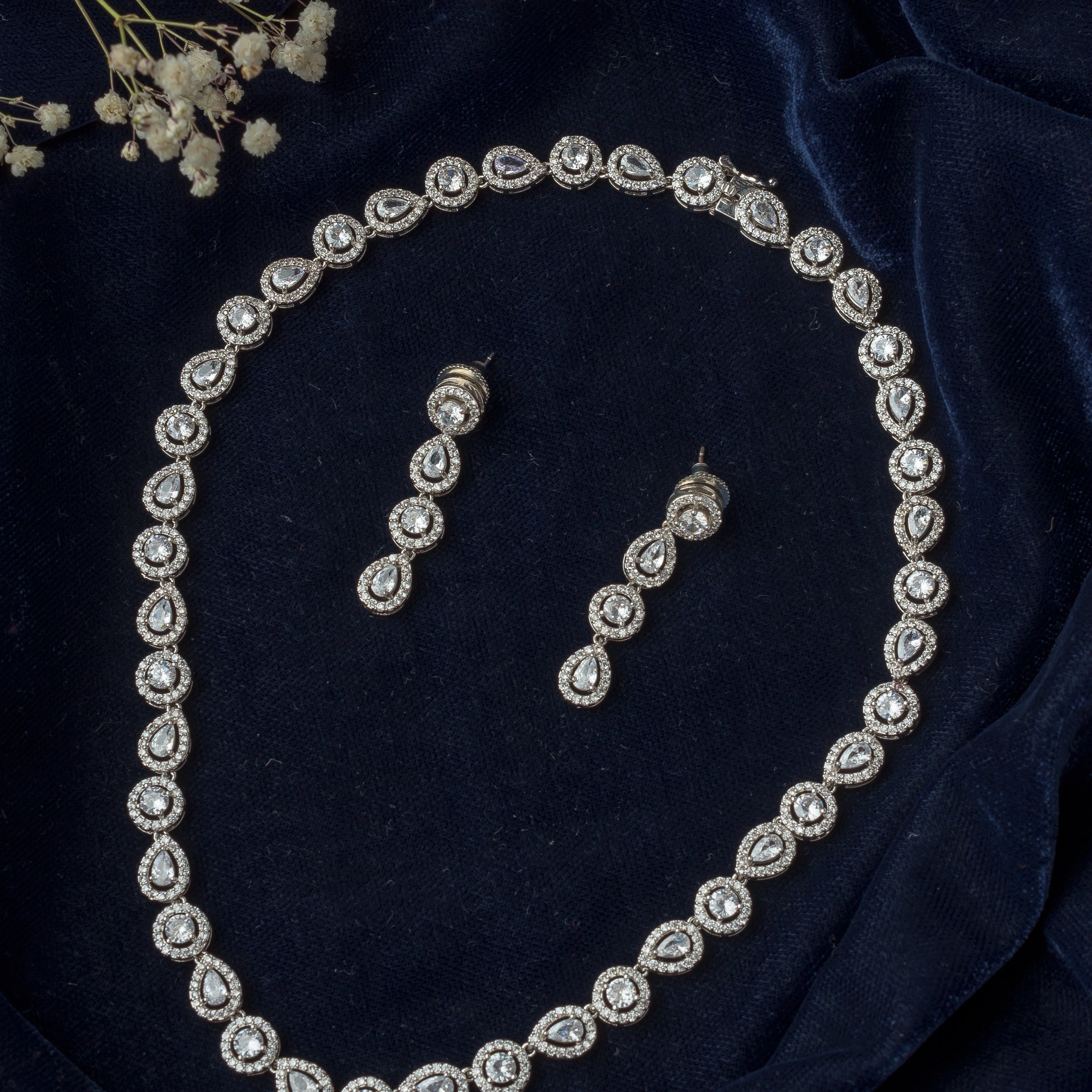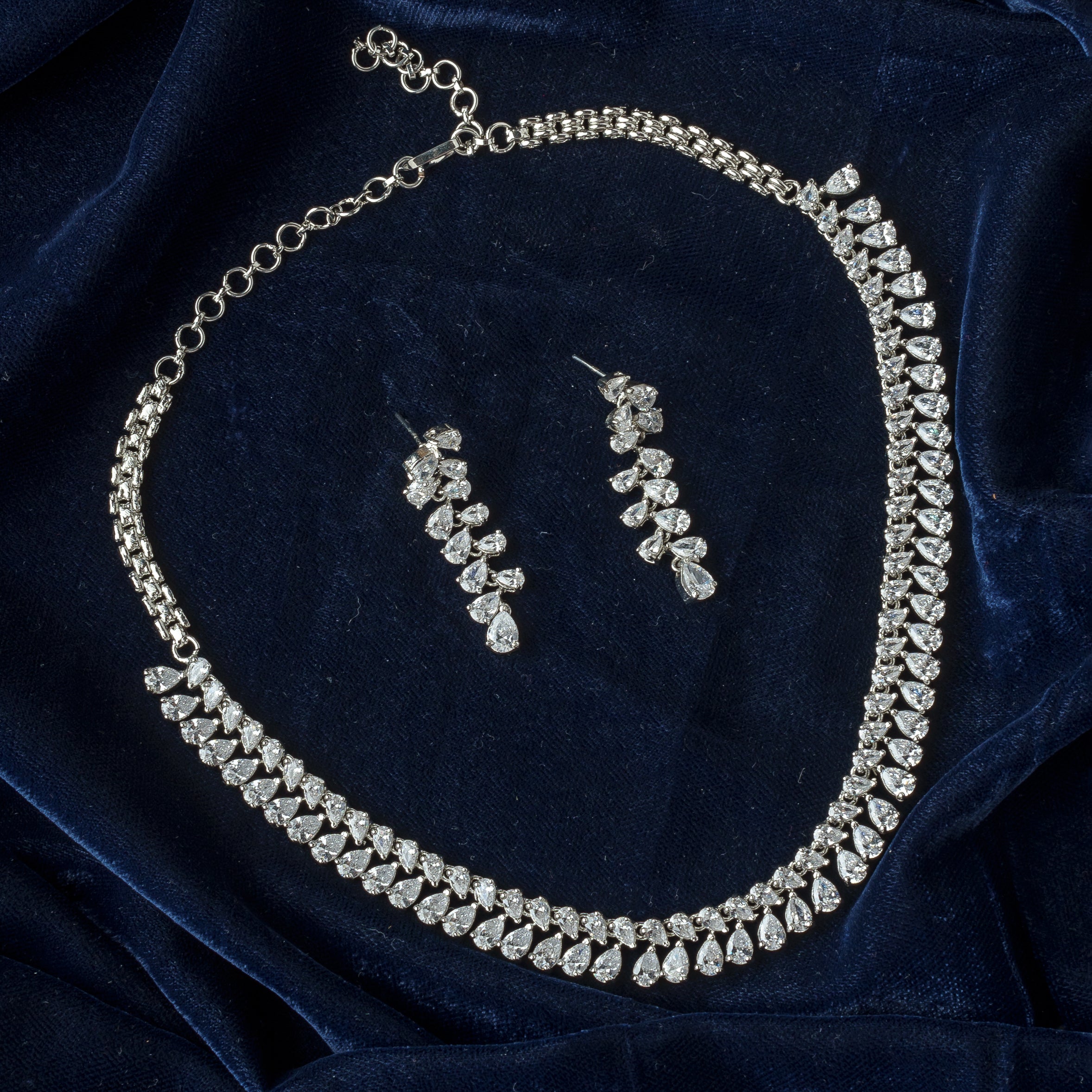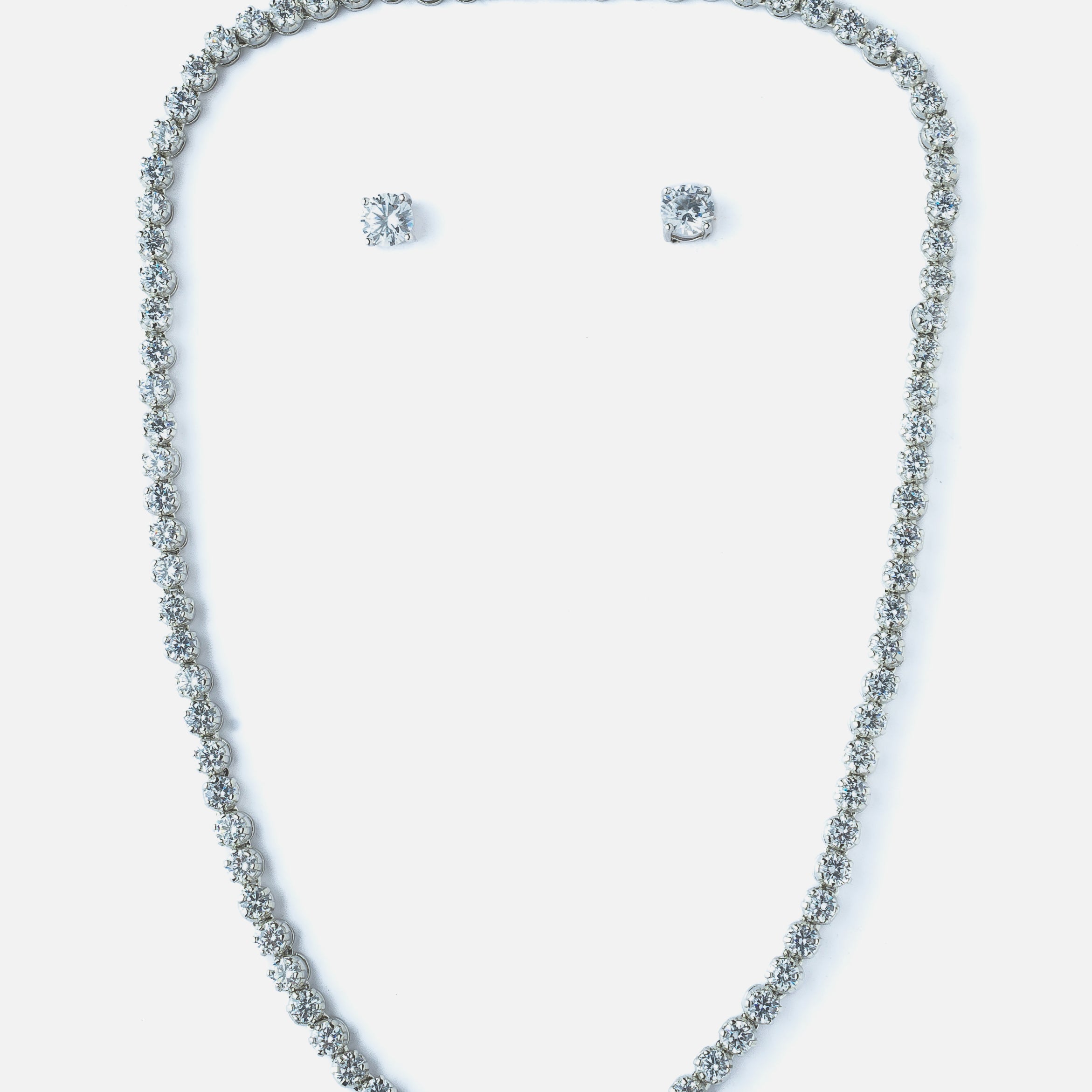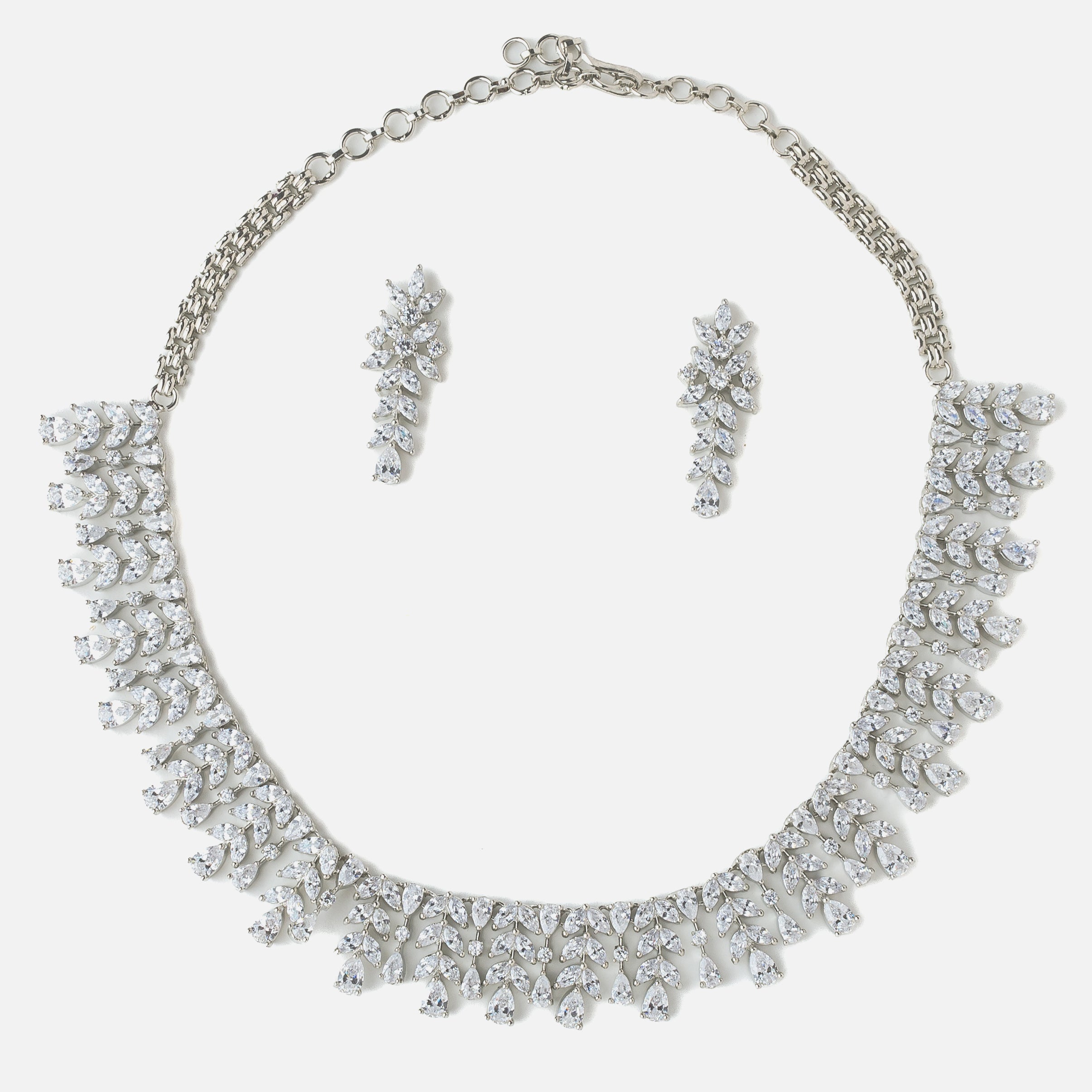 Zia Silver Plated Womens Zircon Necklace Set with Pair of earrings