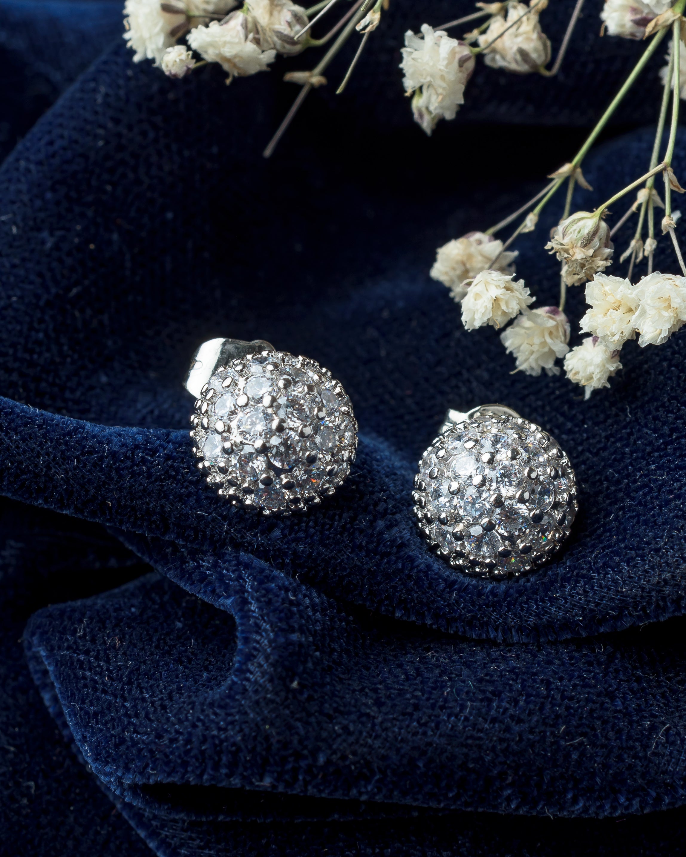 Add glamour to your look with these dome-shaped stud earrings encrusted with sparkling stones. Perfect for evening wear or parties, they bring timeless elegance and shine to any outfit.