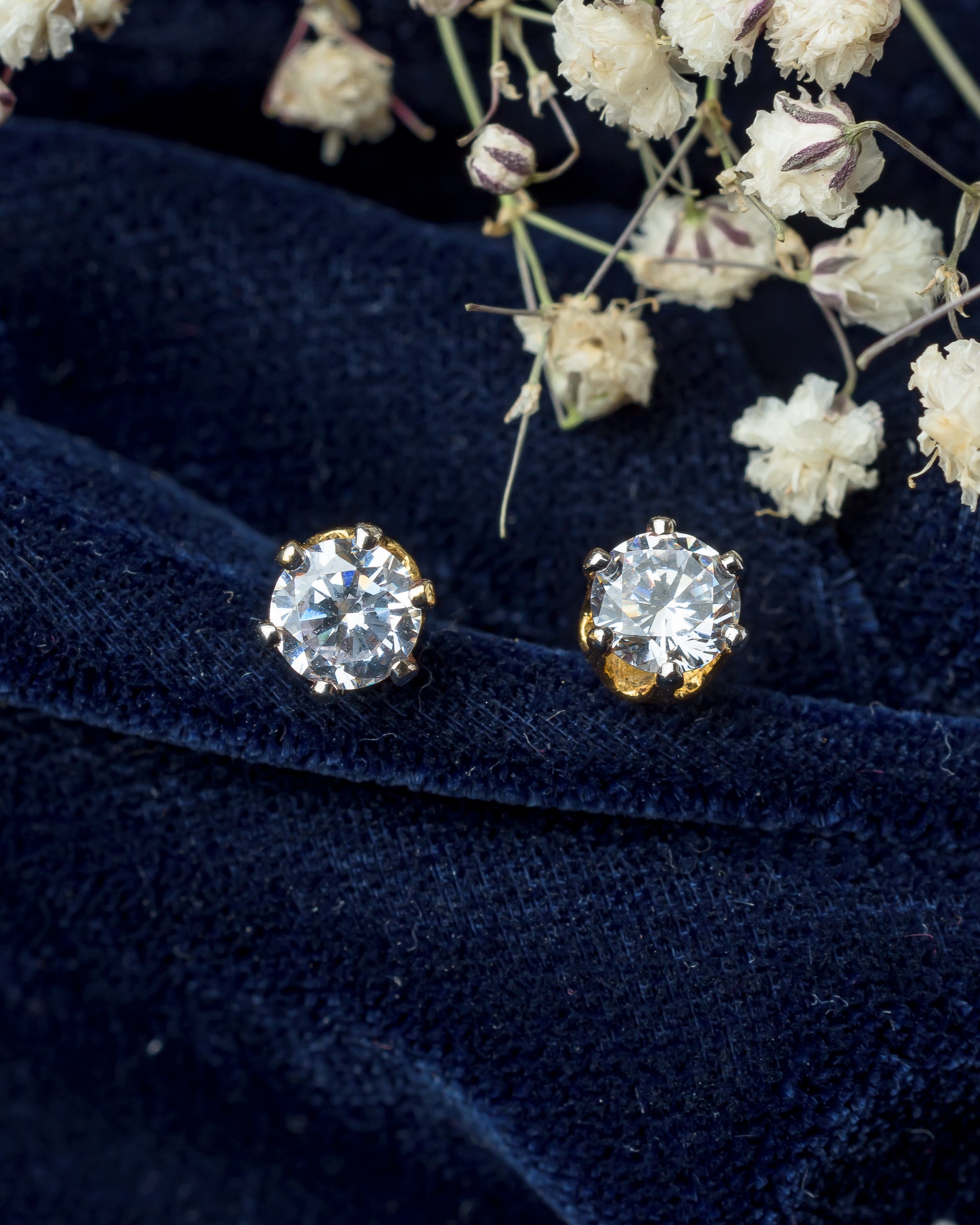 Timeless and elegant, these solitaire stud earrings feature brilliant-cut stones set in a gold-toned base. Perfect for everyday wear or adding subtle sparkle to any outfit, day or night.