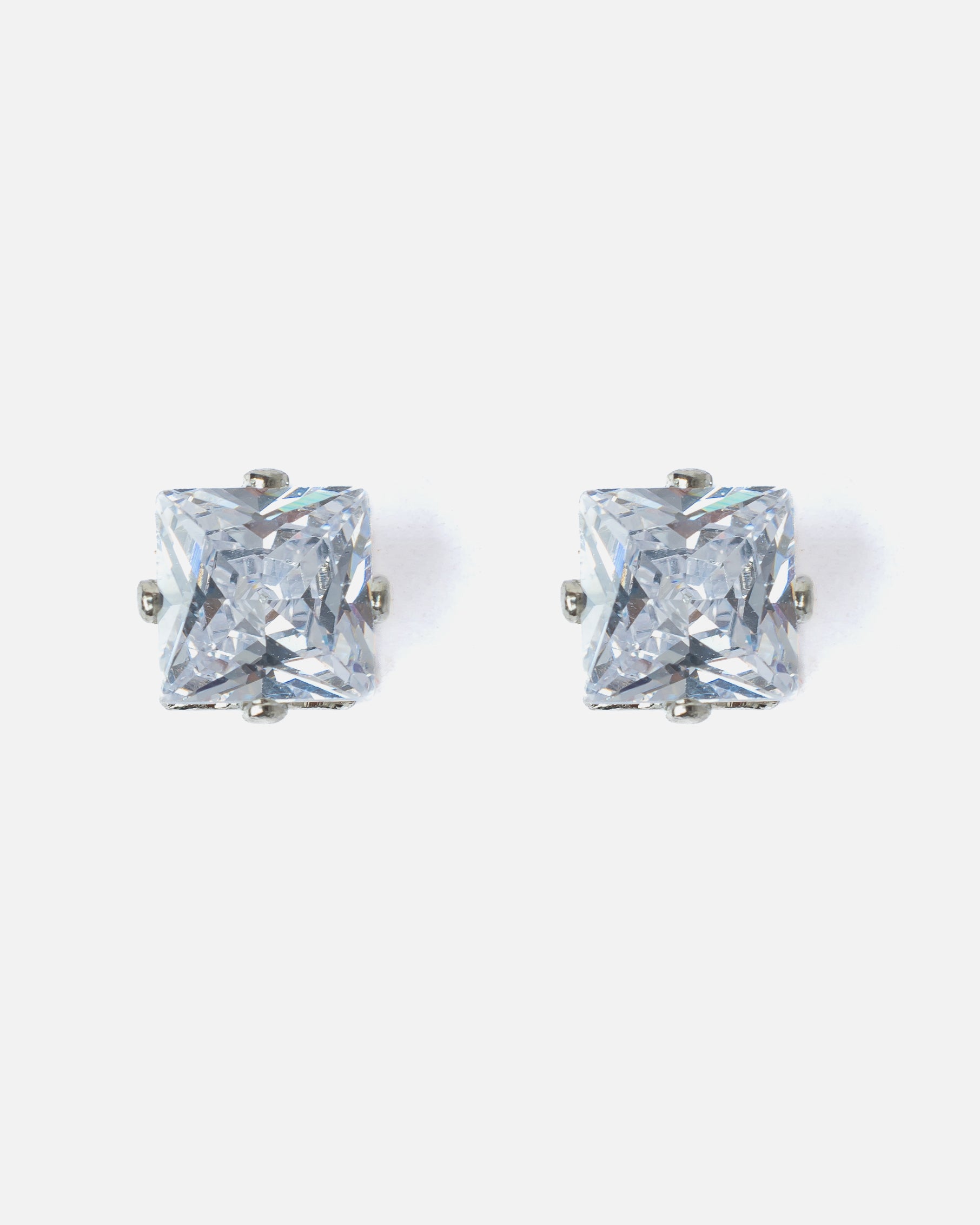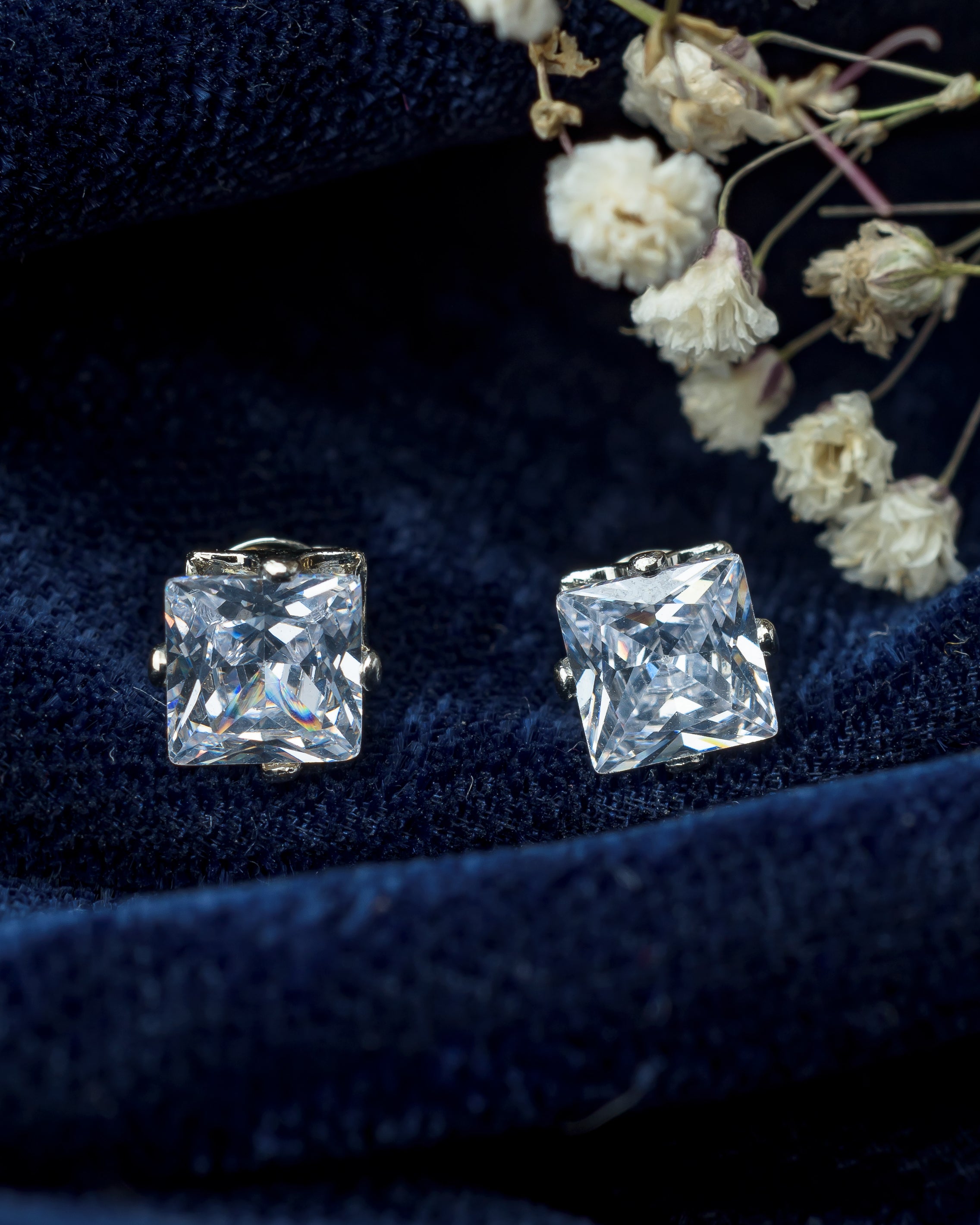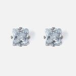 Elevate your elegance with these stunning rectangular-cut stud earrings, featuring radiant clear stones in a sleek silver-tone setting. Perfect for both formal and casual wear, they exude timeless charm.