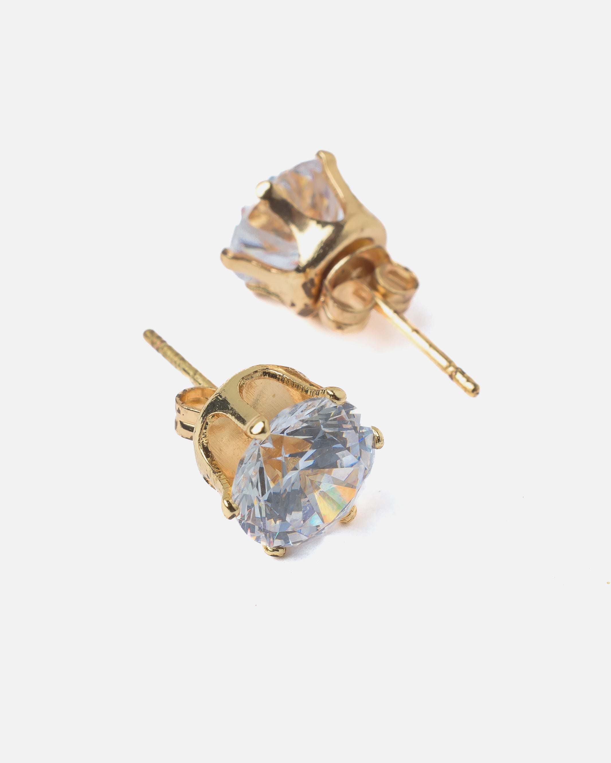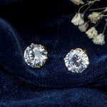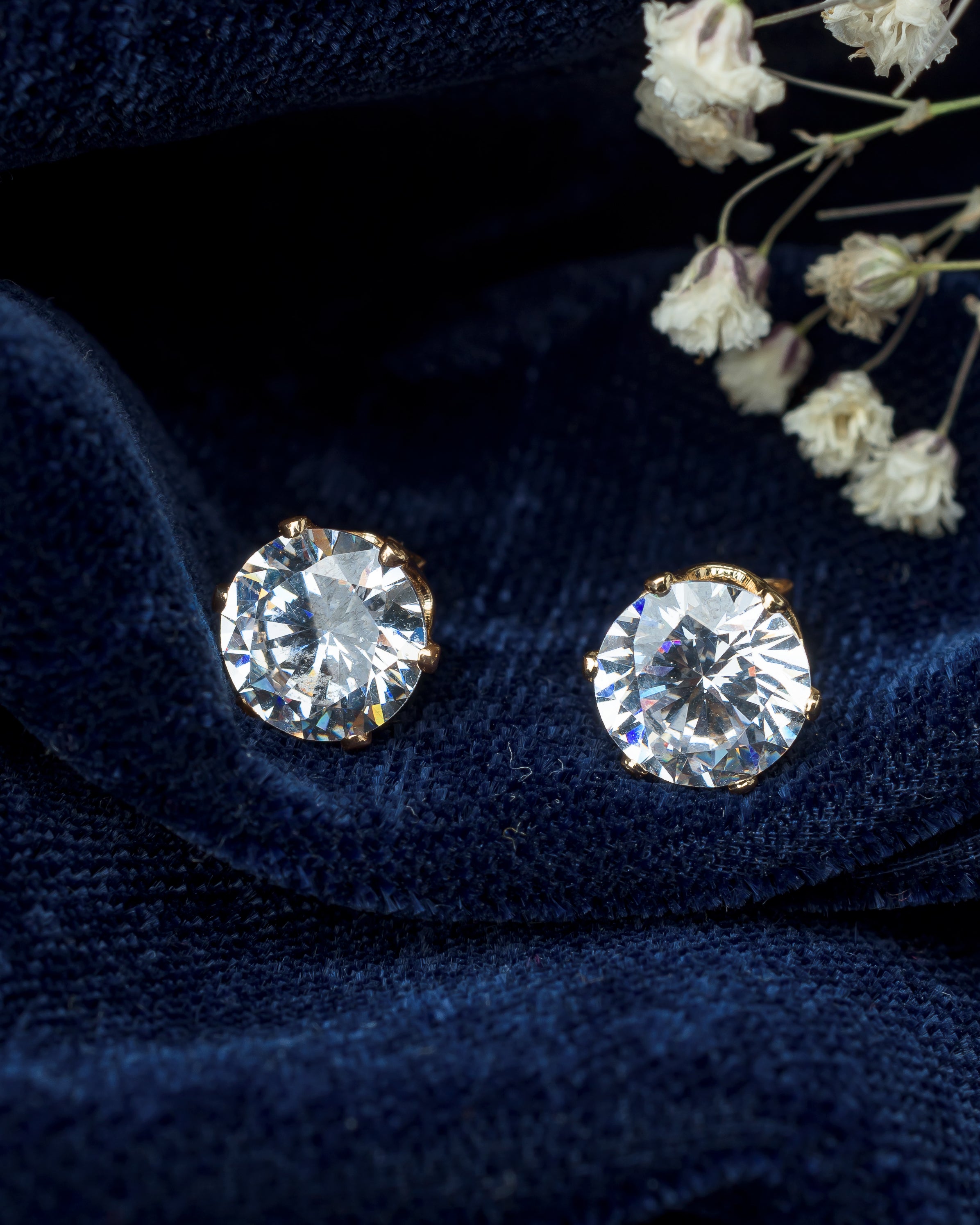 These radiant round-cut stud earrings feature brilliant solitaire stones set in a sleek metal base. Elegant and timeless, they add a sparkling touch to any outfit—perfect for both day and night wear.