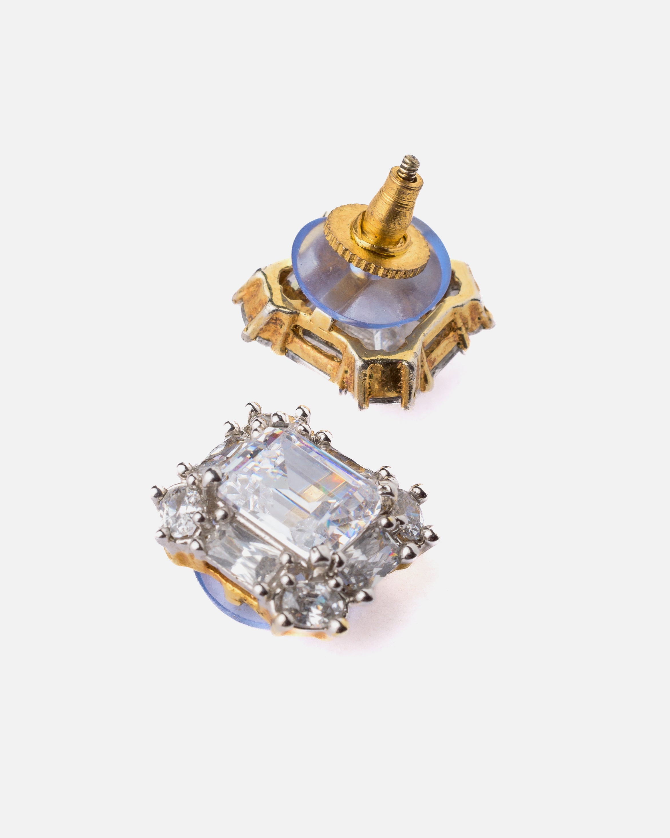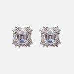 These stunning stud earrings feature a radiant emerald-cut stone surrounded by shimmering crystals, set in a premium metal finish. Perfect for adding elegance to any outfit, ideal for special occasions or daily wear.