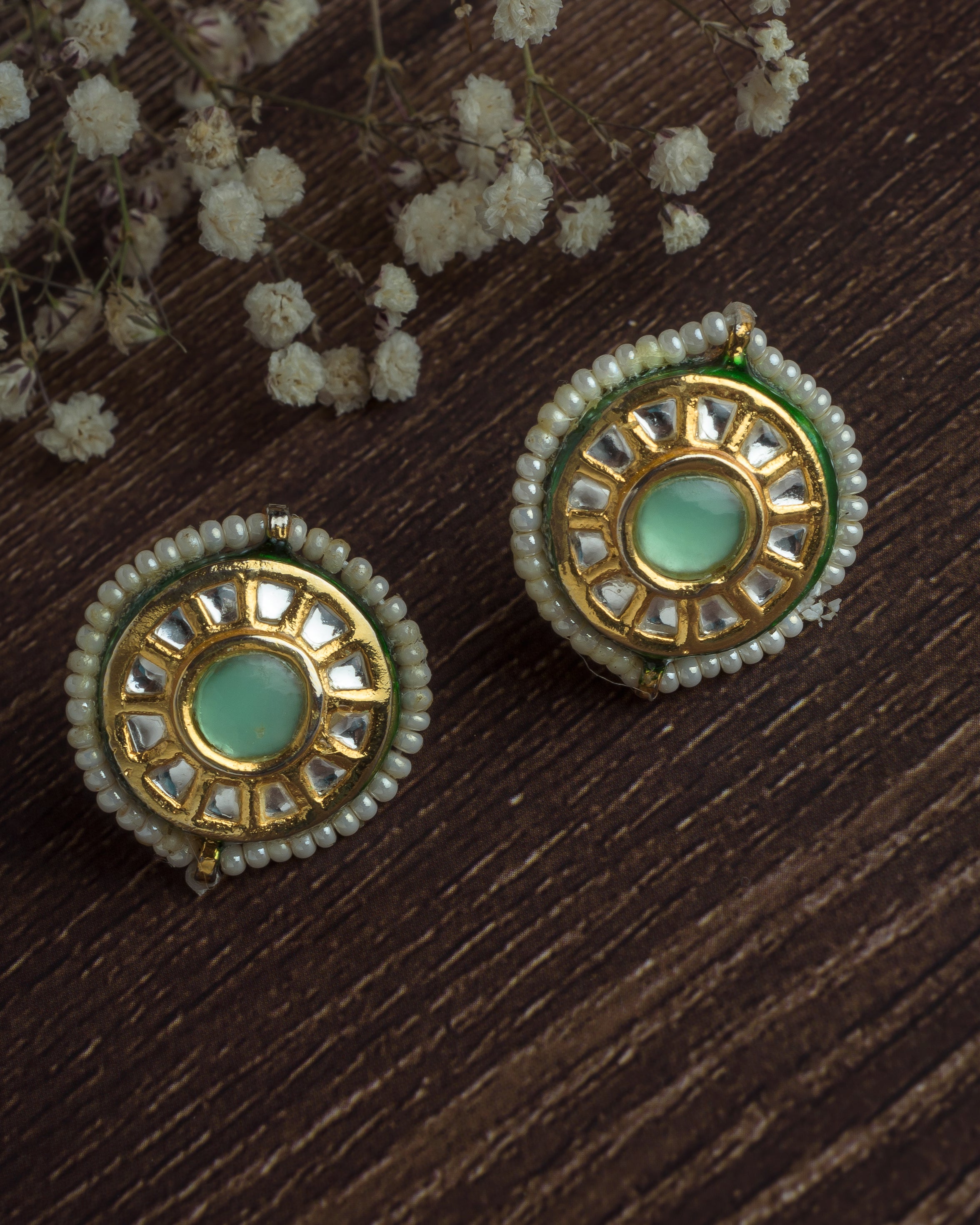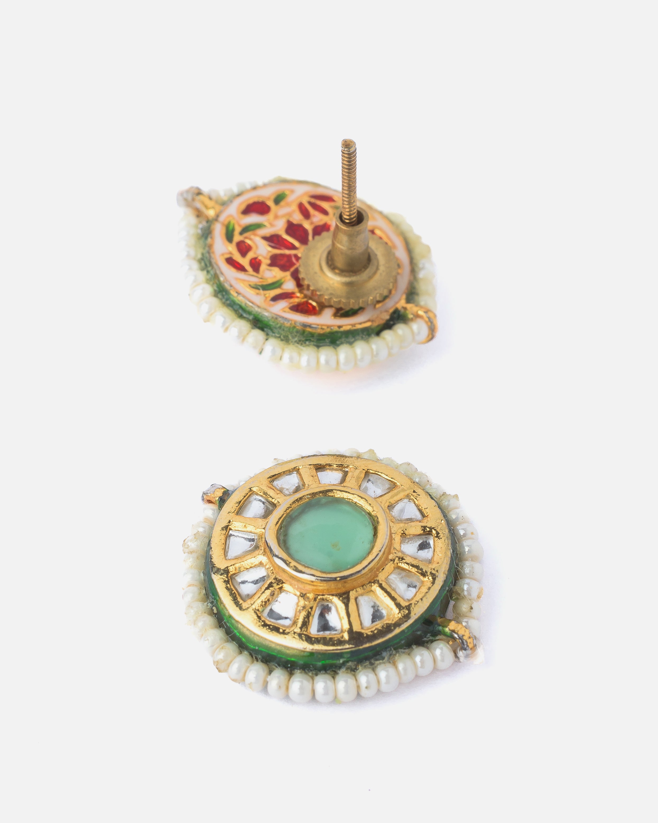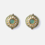 Gold Plated Green Womens Kundan & Polki Stud Pair of Earrings