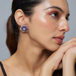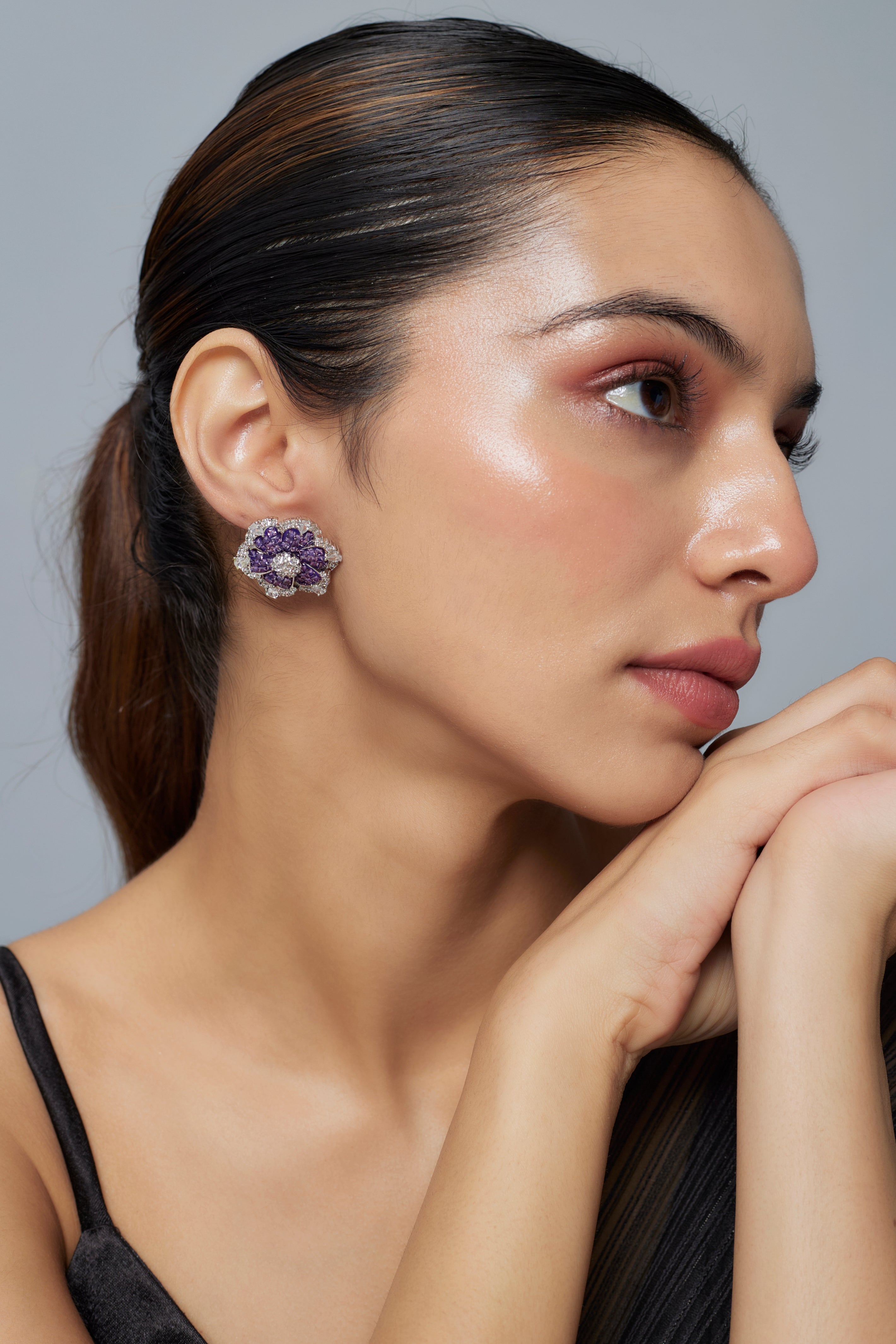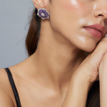 • Elegant Design: Stunning floral statement earrings with intricate detailing and violet stones, crafted to elevate any ensemble.