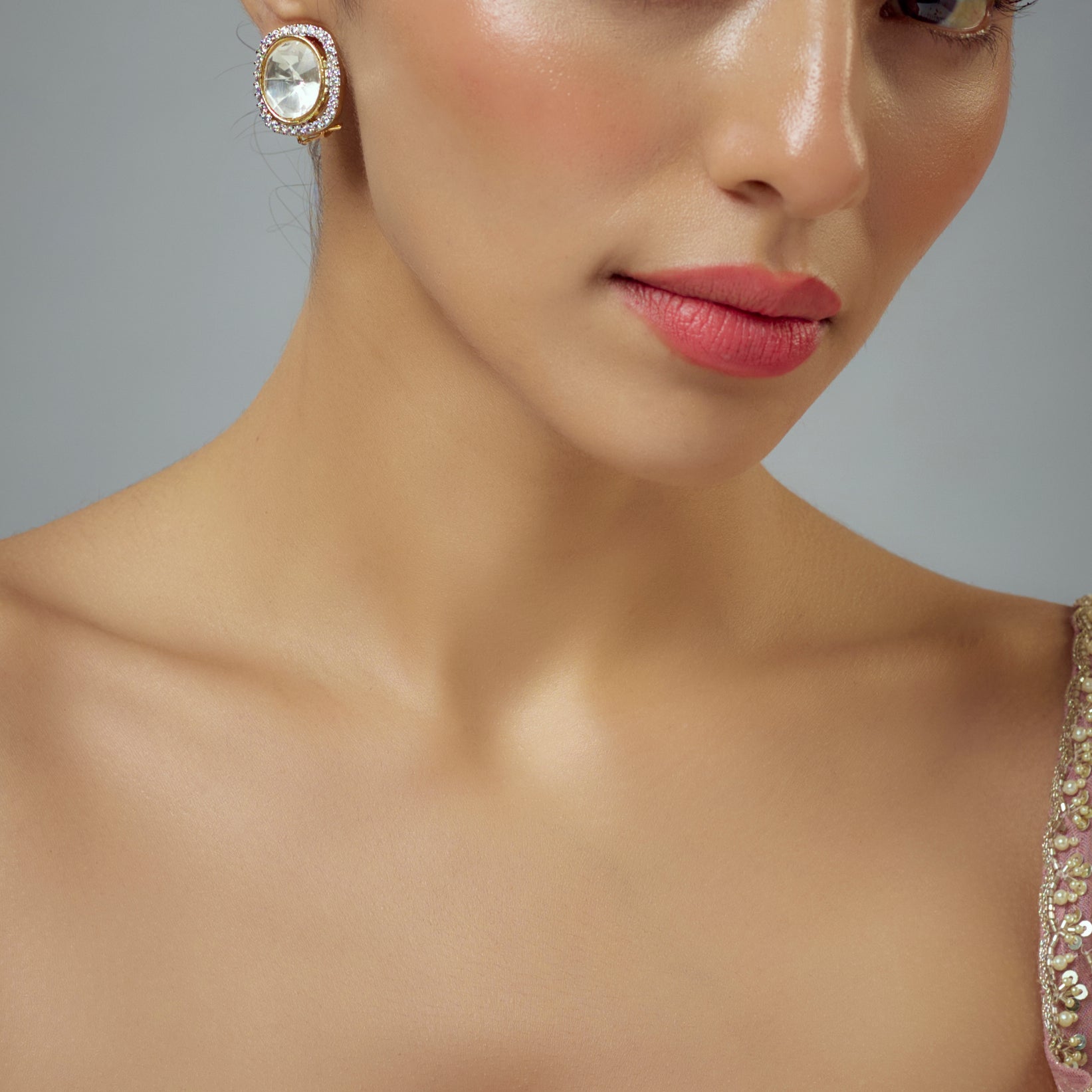 Florence Gold Plated Kundan, Polki Womens Pair of Studs Earrings (Freesize)