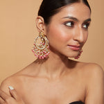 Aatman Gold Plated Pink Womens Kundan, Polki Pair of Earrings