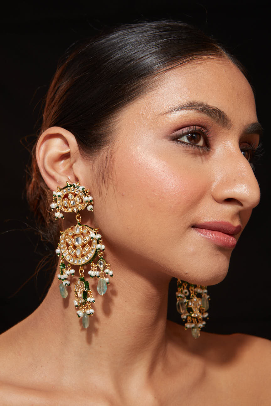Inaayat Gold Plated Green Womens Kundan, Polki Pair of Earrings