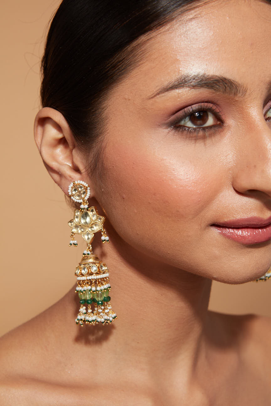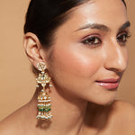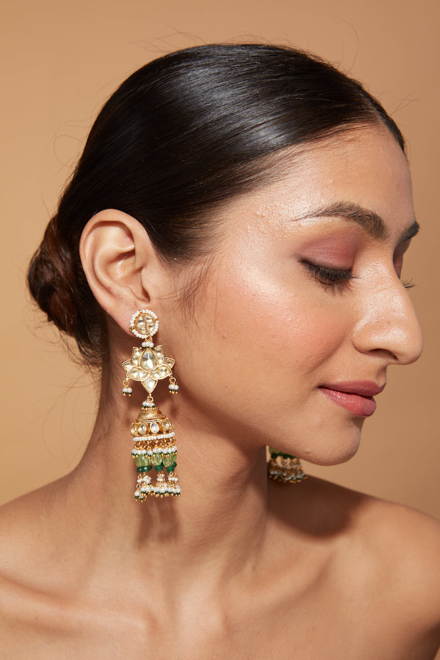 Aatman Gold Plated Green Womens Kundan, Polki Pair of Earrings
