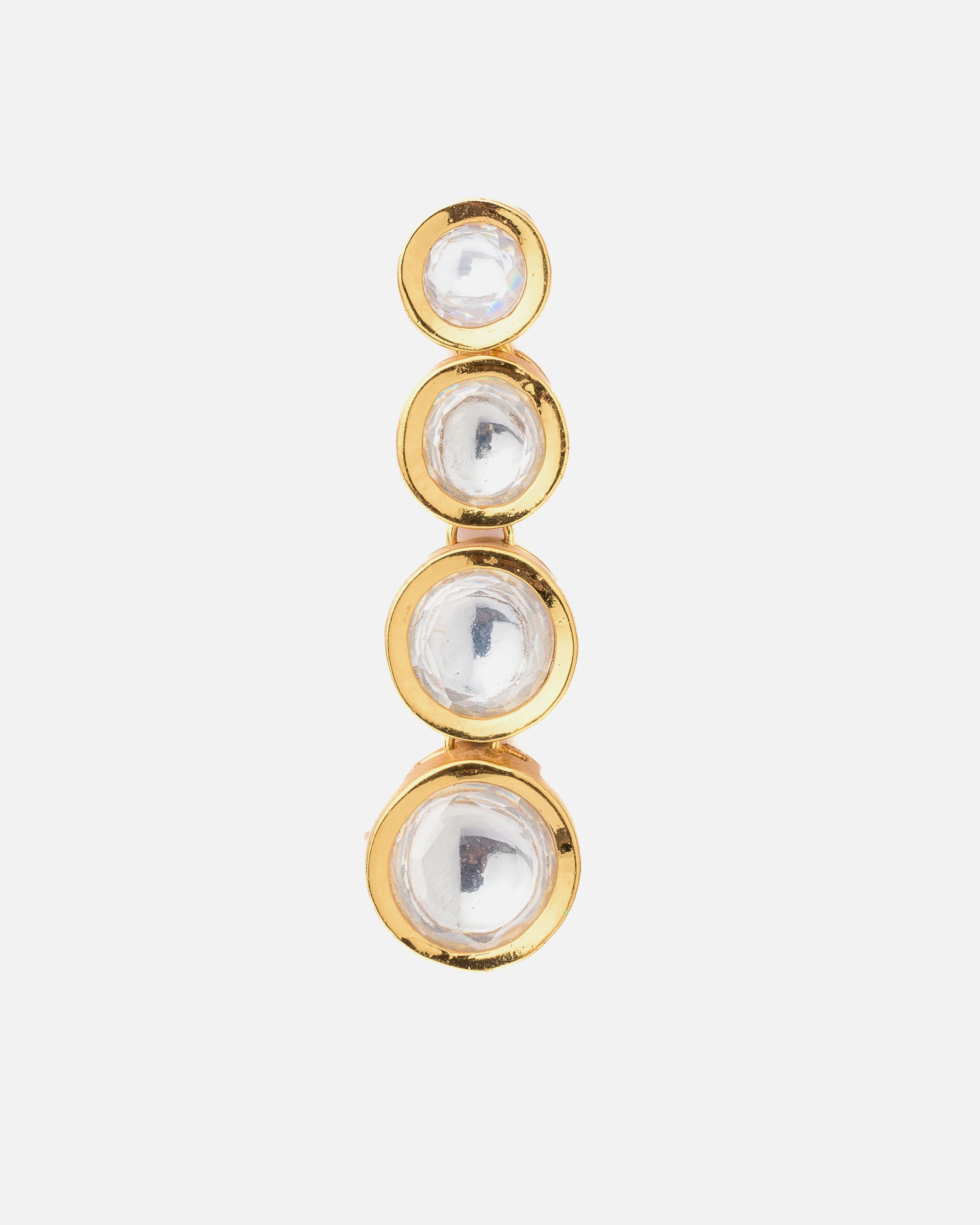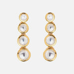 Elegant gold-plated earrings adorned with five sparkling Kundan stones in a cascading design. Perfect for weddings and festive occasions, these lightweight earrings add a touch of traditional charm to any outfit.