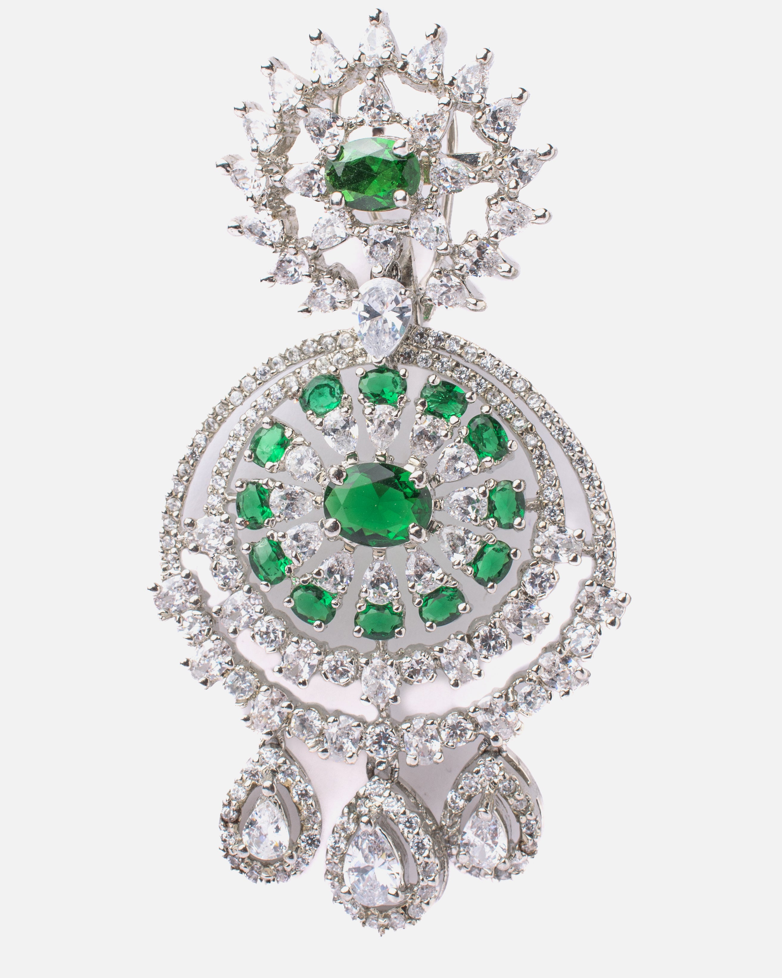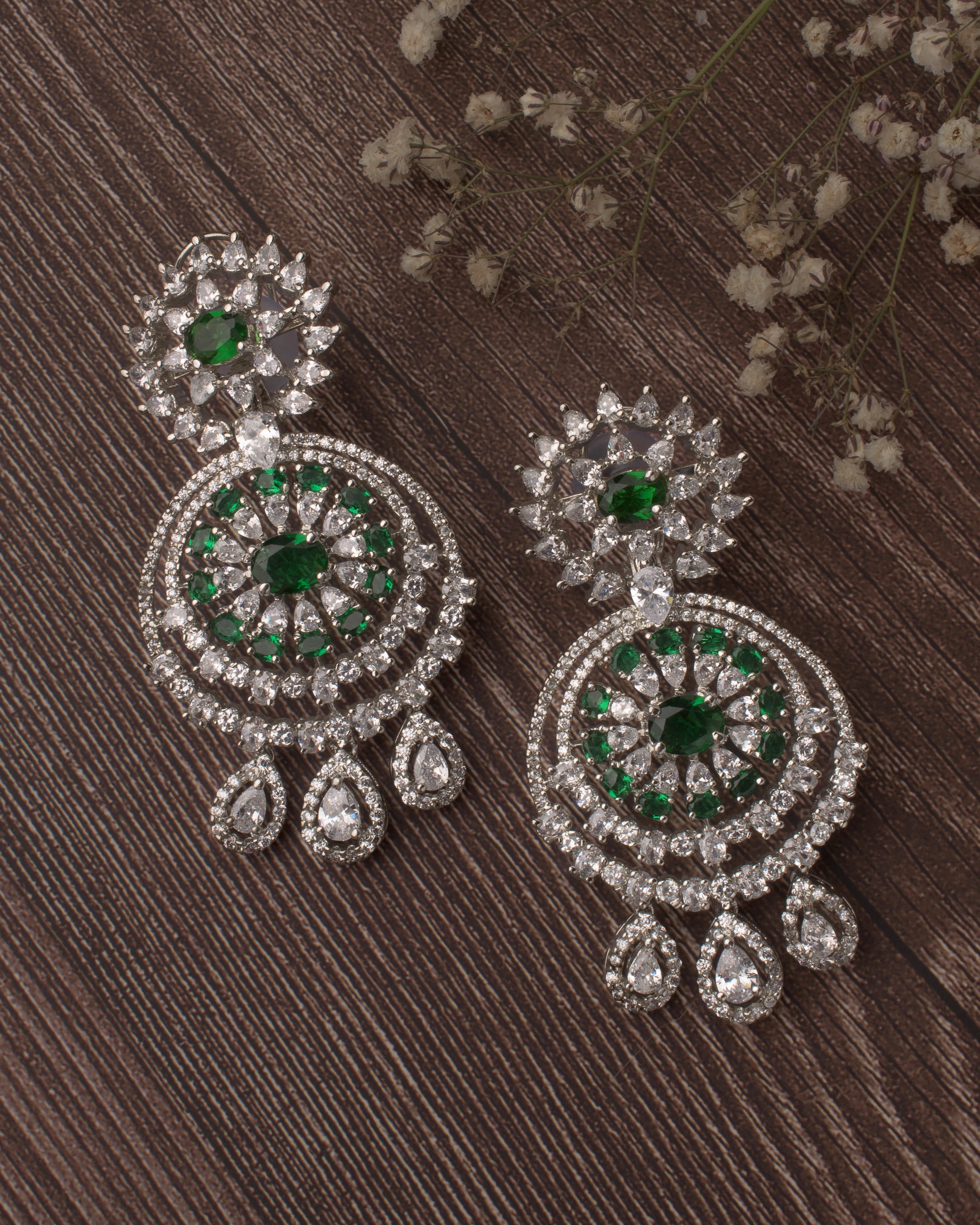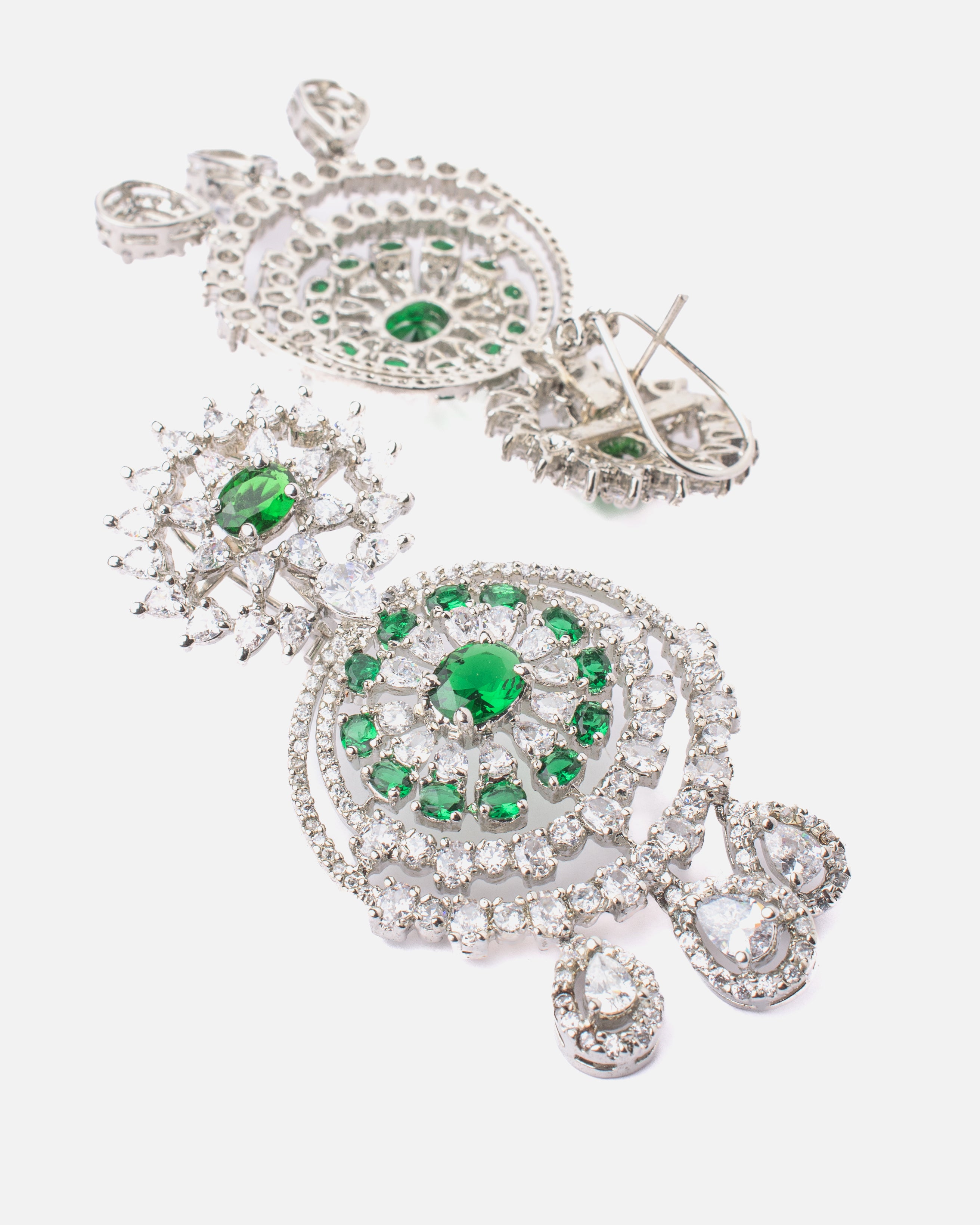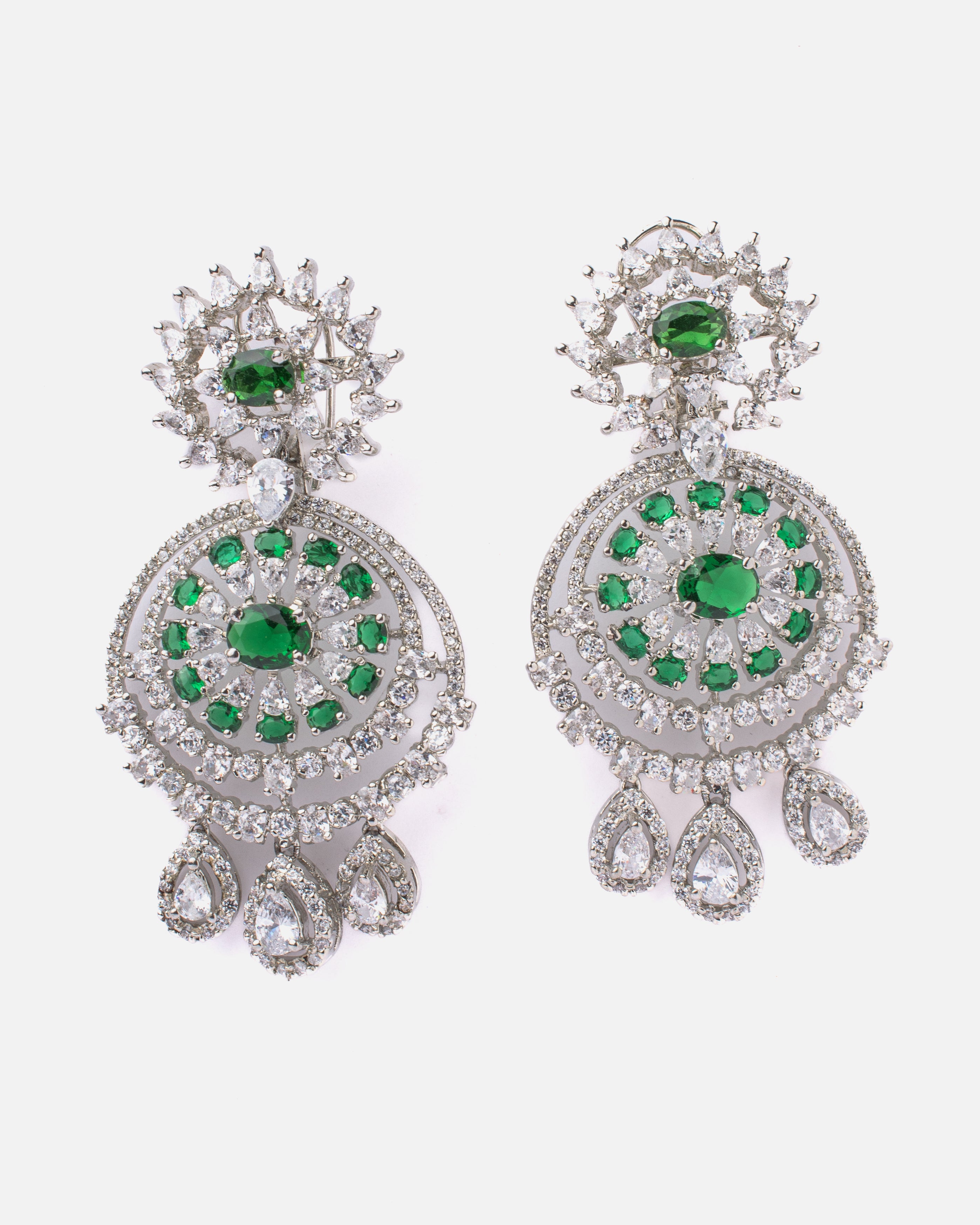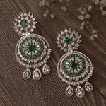 Add sparkle to your style with these exquisite silver-toned earrings featuring dazzling green and white stones. Perfect for weddings or festive occasions, they bring charm and elegance to any outfit.