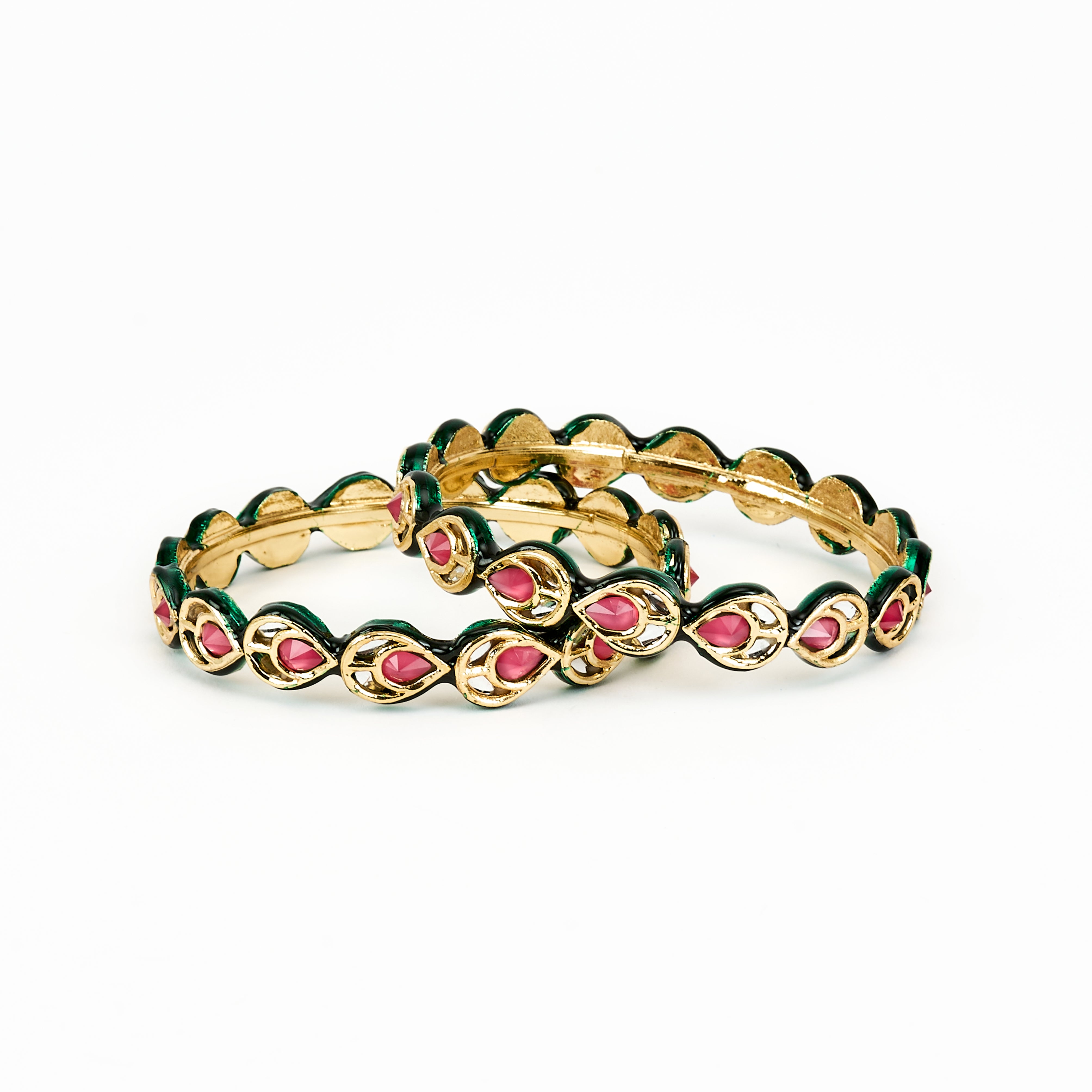 Gold Plated Pink Womens Kundan, Polki Pair of bangles