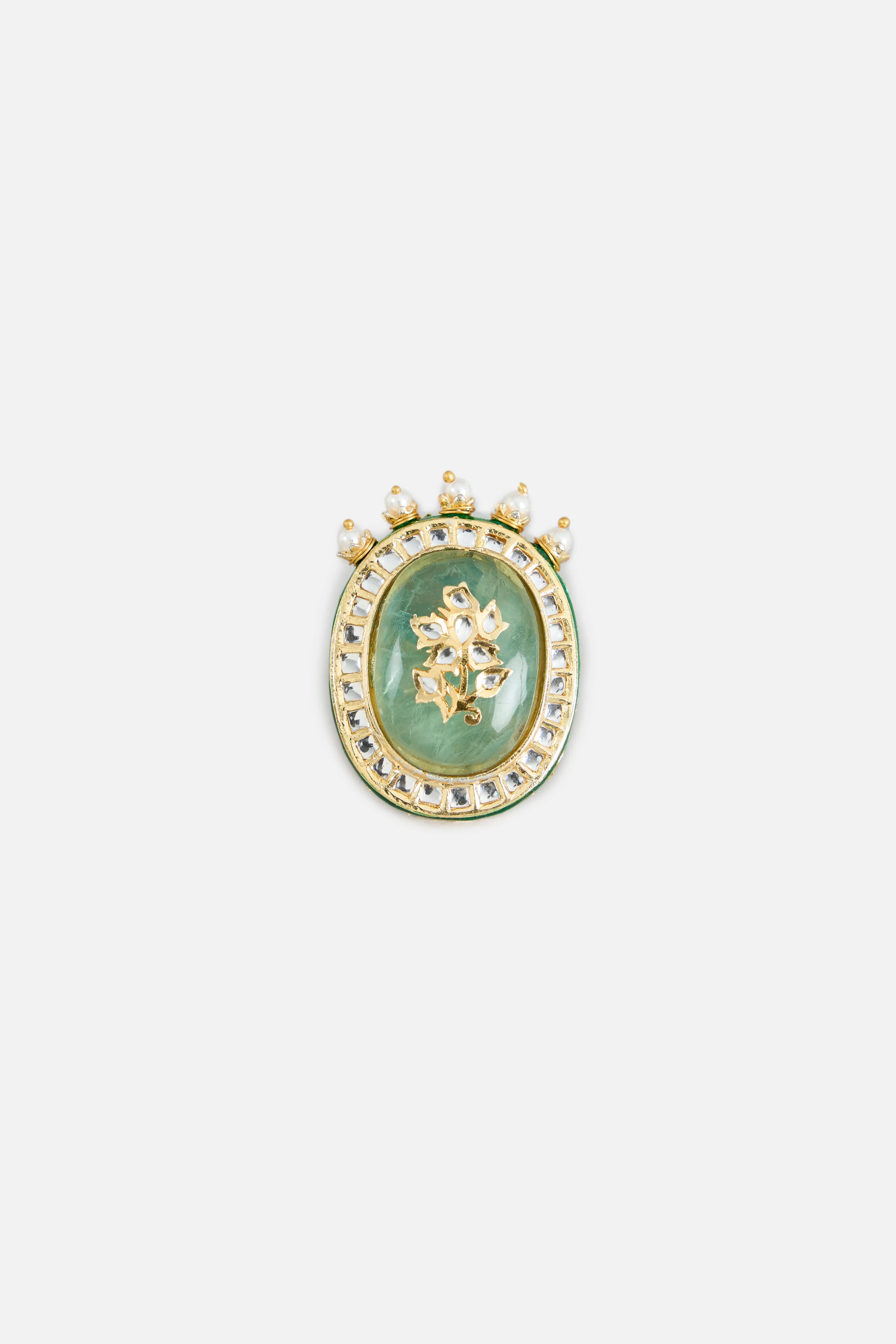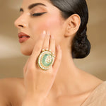 Elegant statement ring with a stunning green stone centrepiece, accented by delicate pearl detailing. Perfect for weddings, festive occasions, or adding a regal touch to your ethnic look.