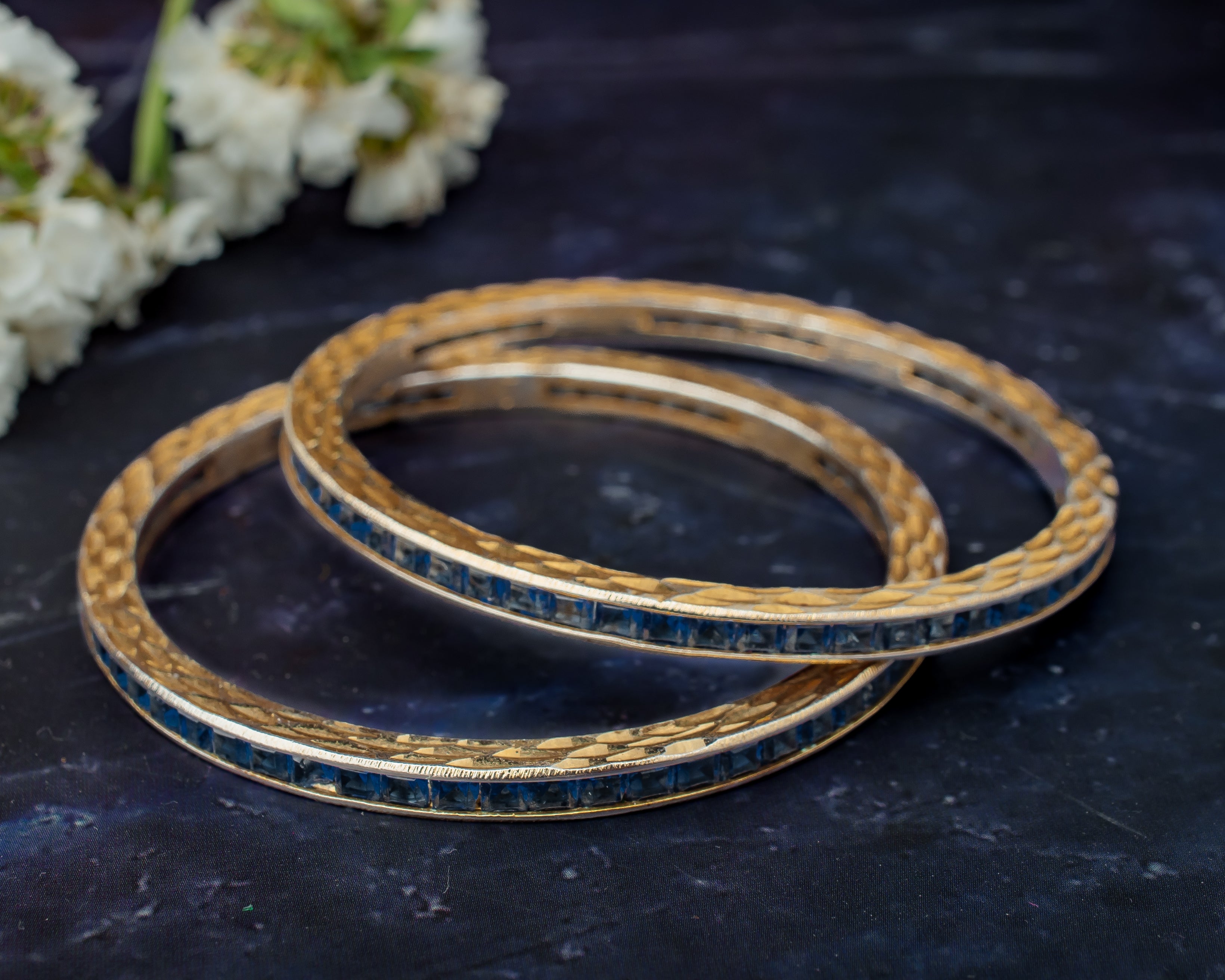 Zia Gold Plated BlueWomens Zircon Pair of Bangles