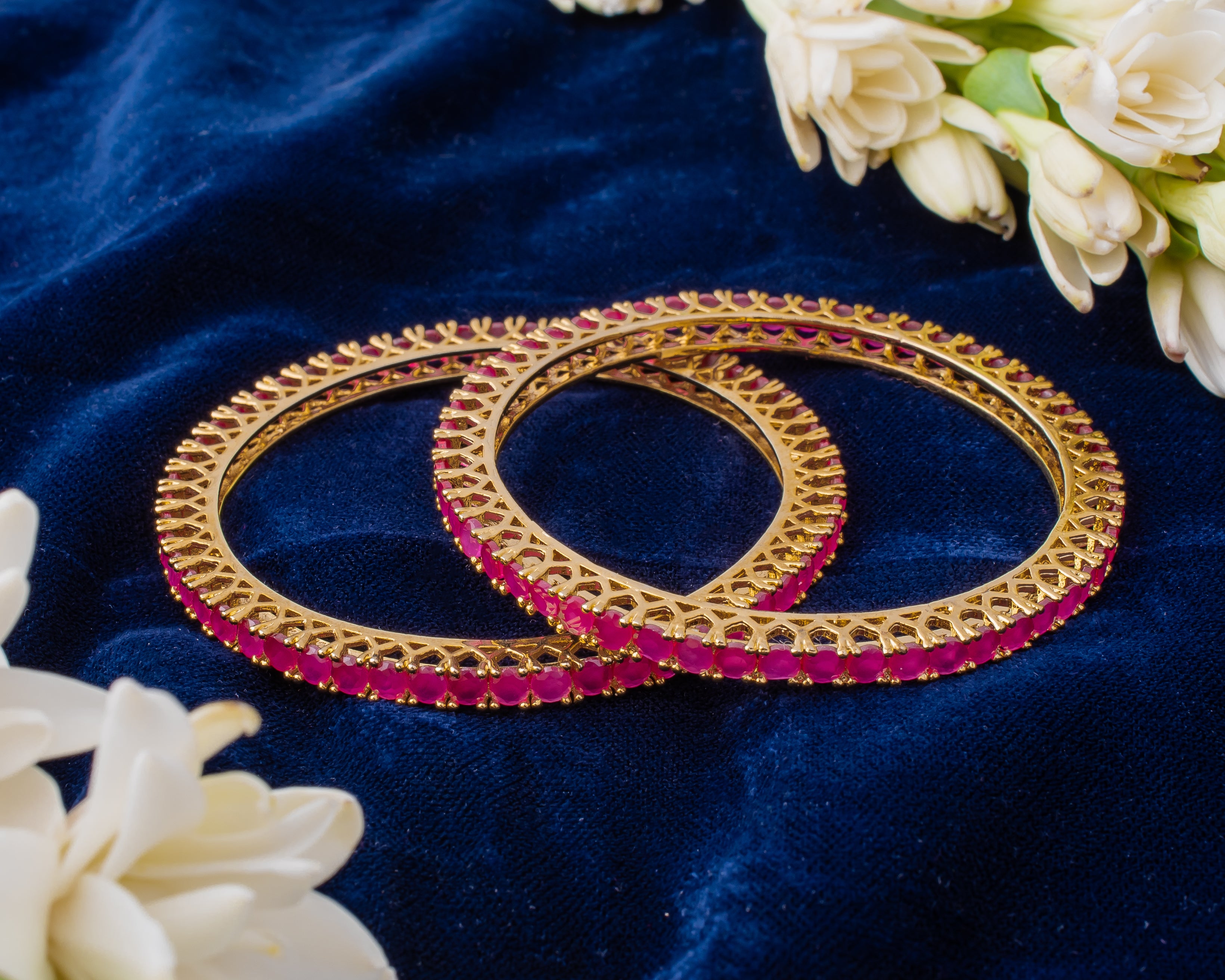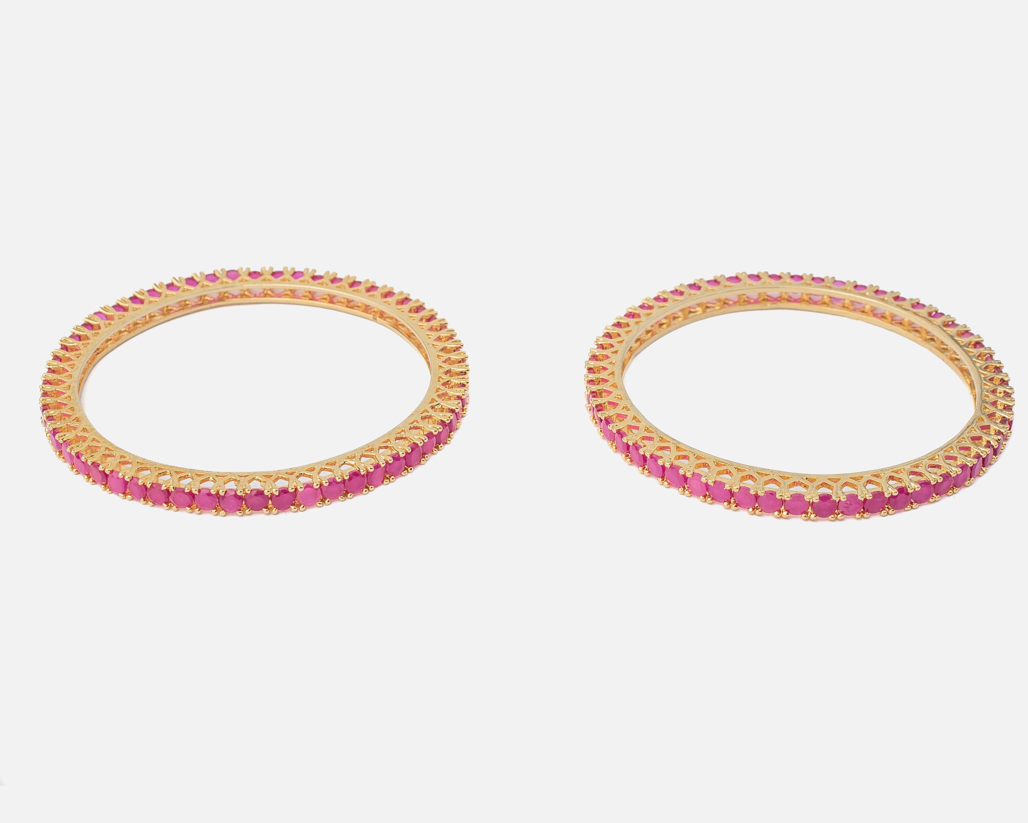 Zia Gold Plated PinkWomens Zircon Pair of Bangles