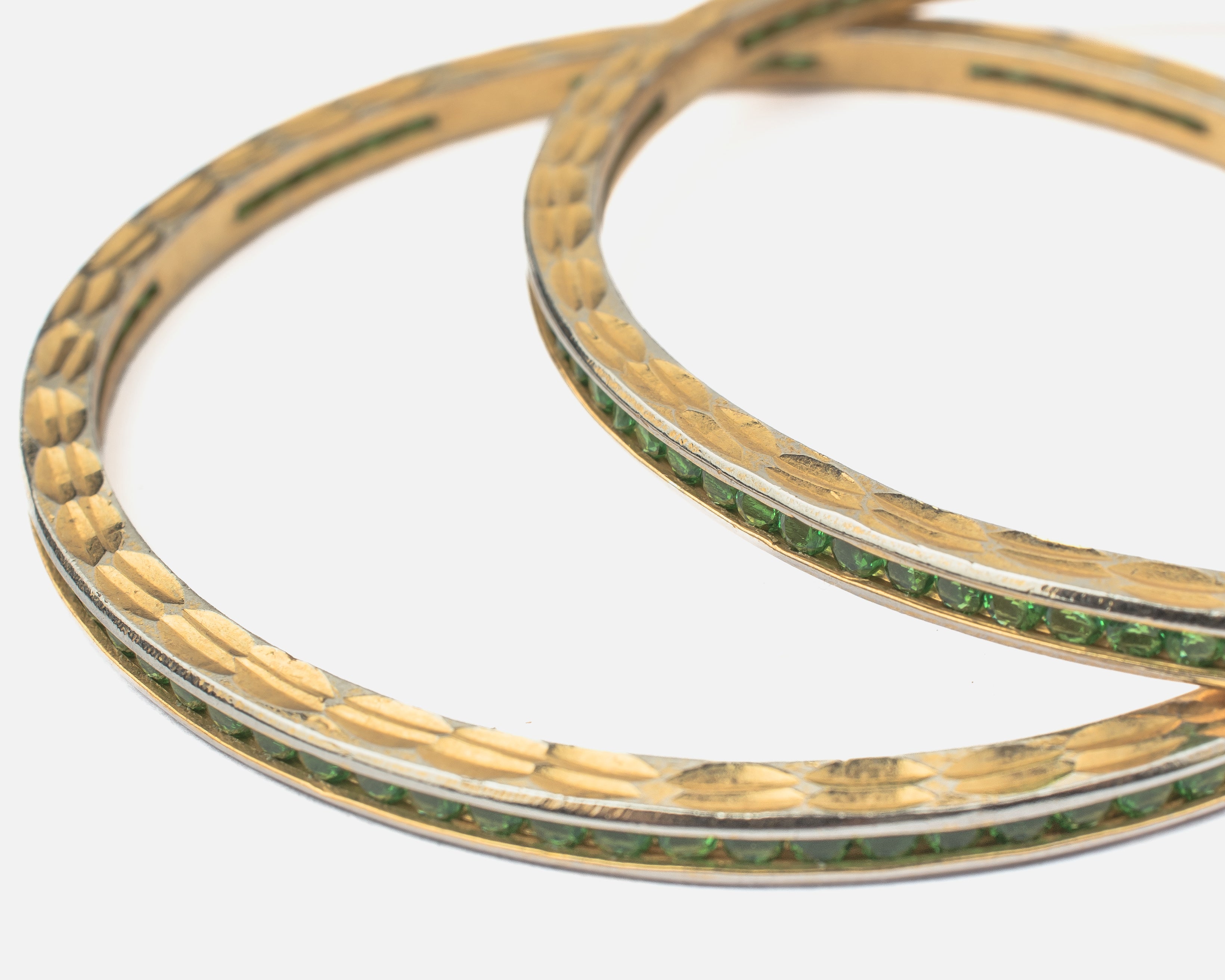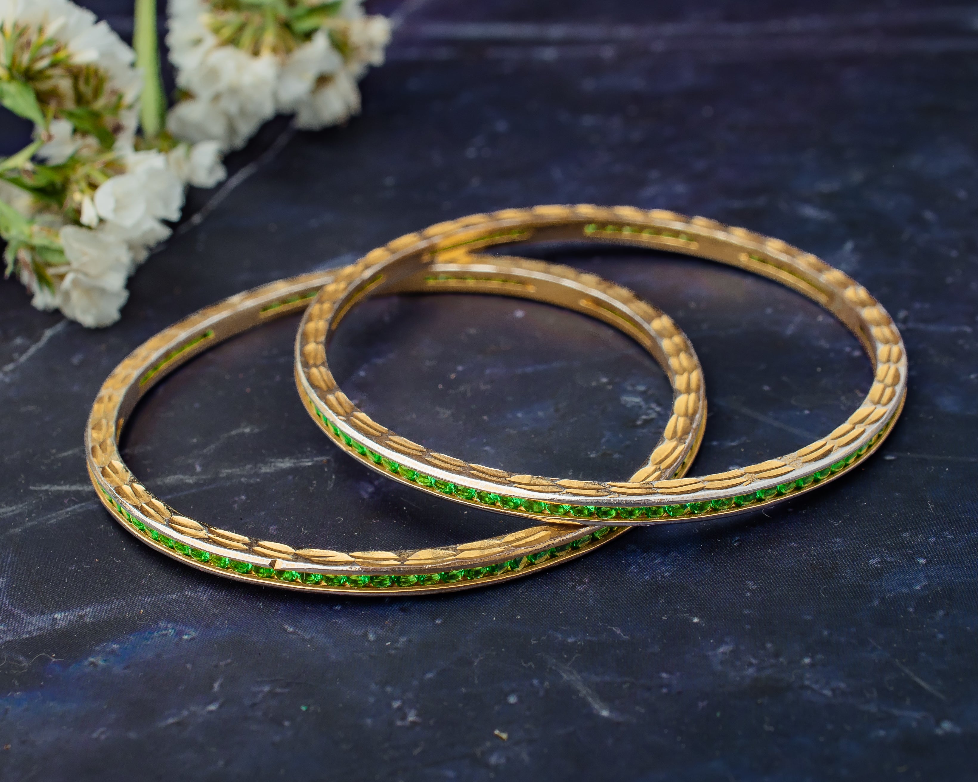 Zia Gold Plated GreenWomens Zircon Pair of Bangles