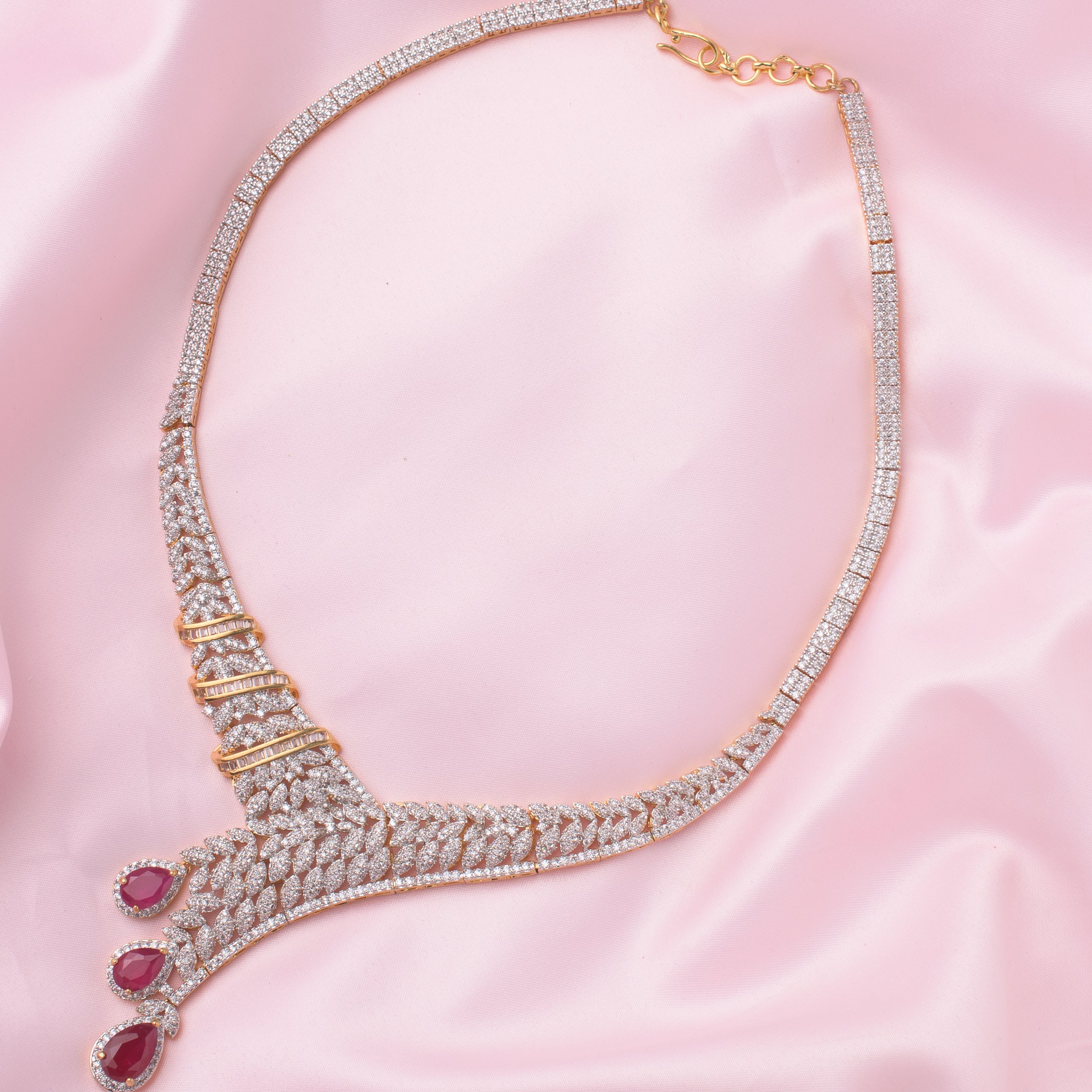 Zia Silver Plated Red Womens Ruby Synthetic Zircon Necklace Set with Pair of earrings