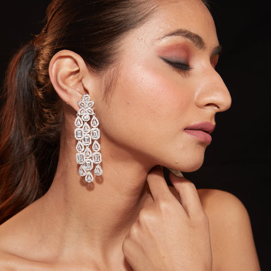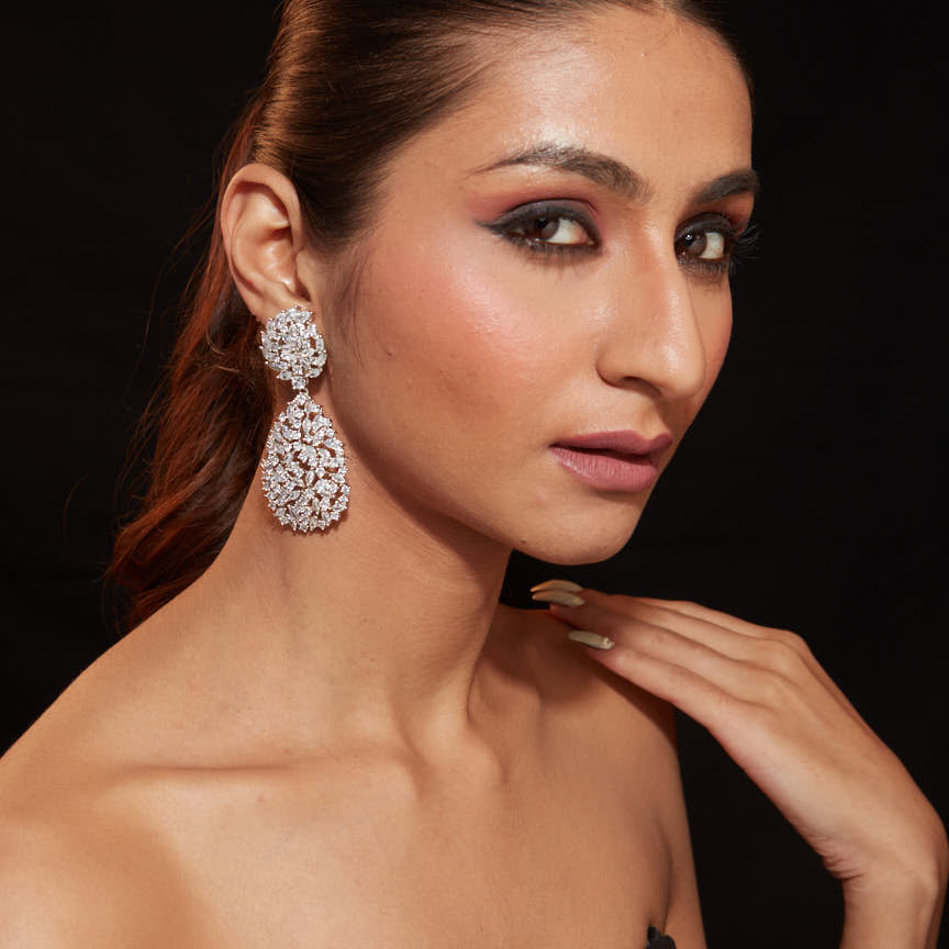 Zia Silver Plated Womens Zircon Pair of Earrings (Freesize)