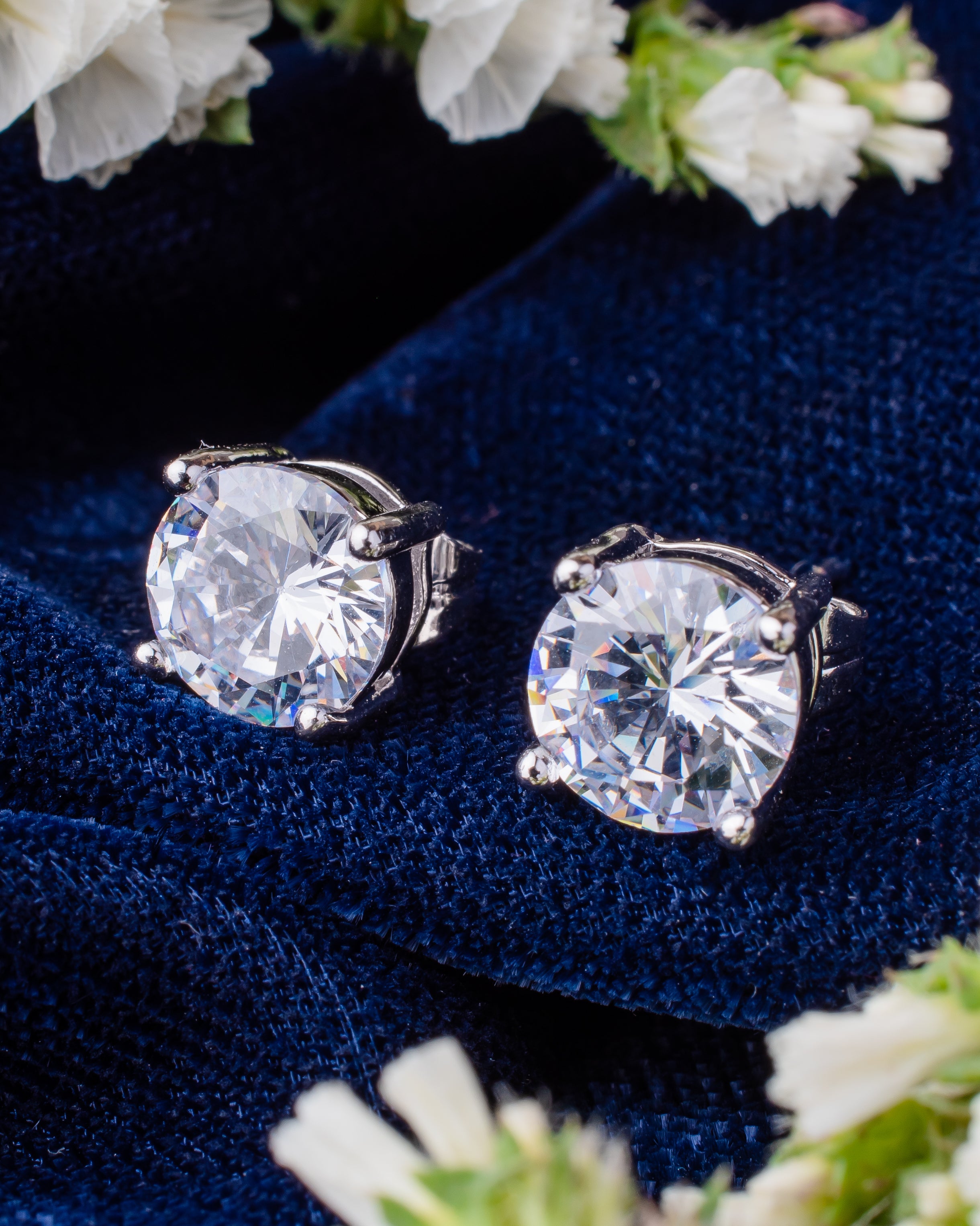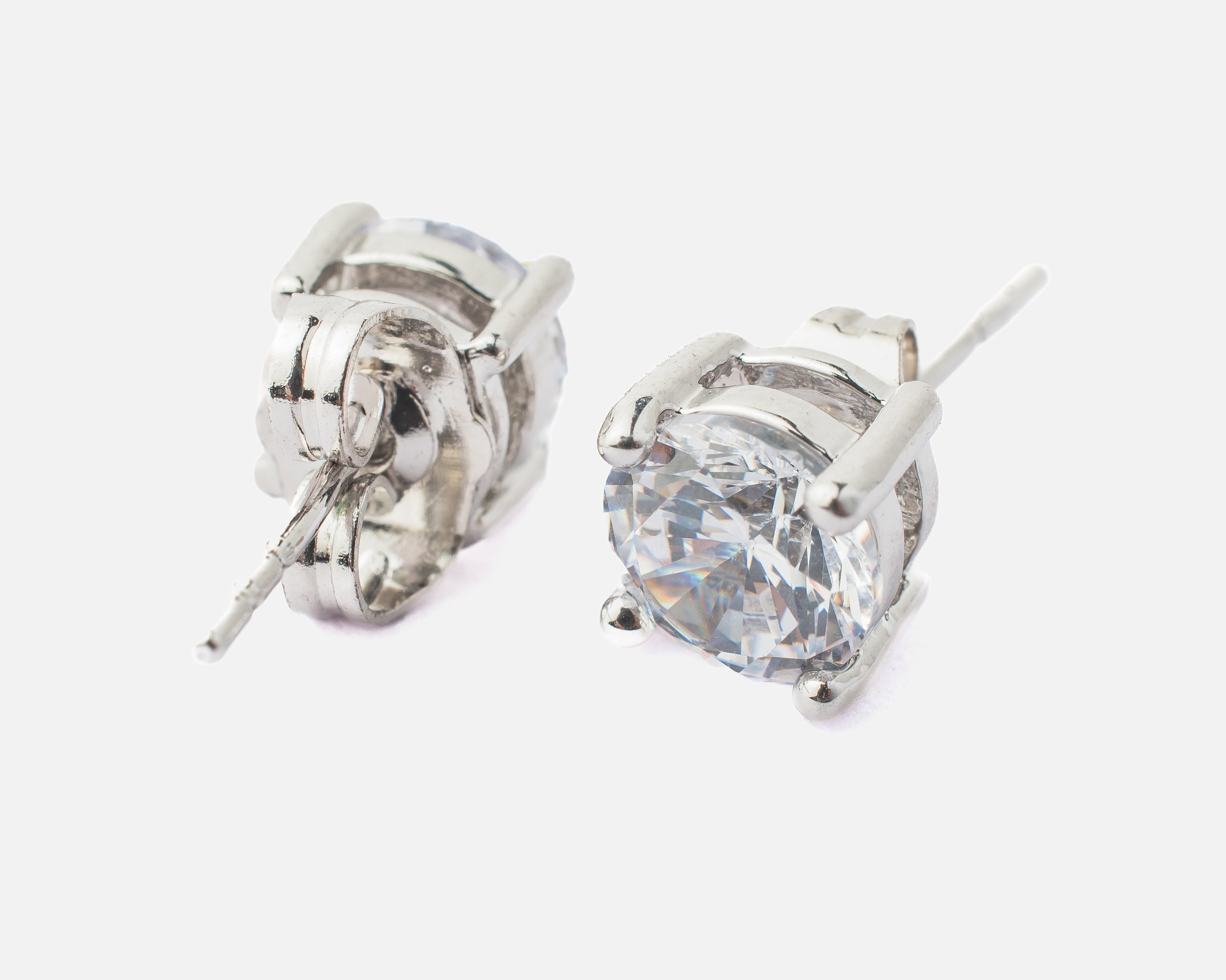 Elegant solitaire stud earrings crafted with shimmering cubic zirconia stones, set in a classic prong design. A timeless accessory that adds sophistication to everyday looks or special occasions.
