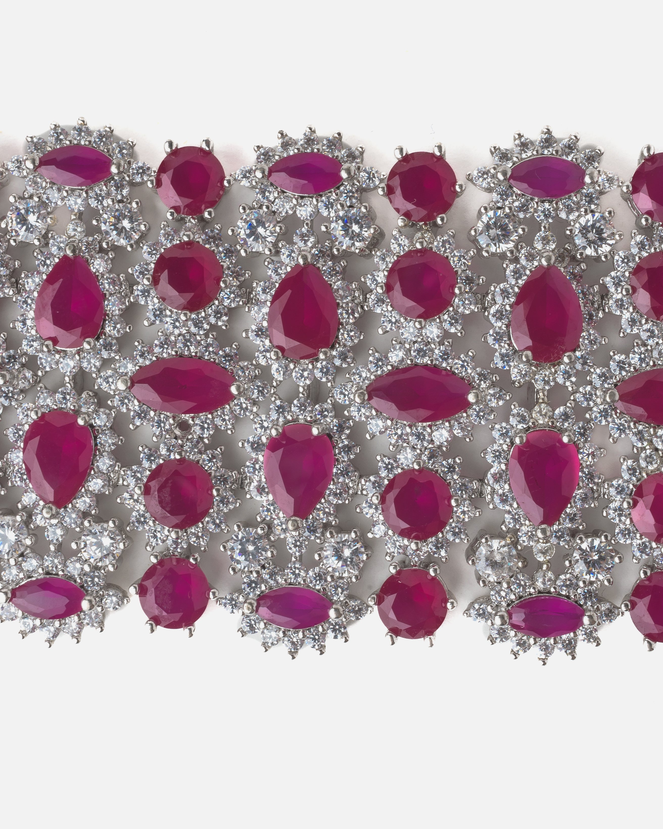 - Intricate Design: Features a stunning floral pattern with ruby-red and white stones for a luxurious look.